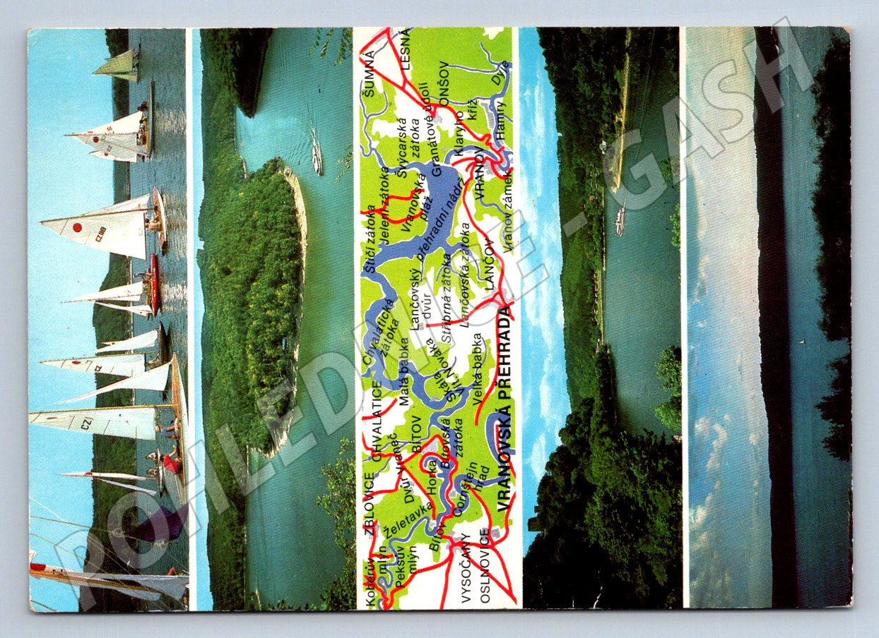 Pohlednice Vranovská přehrada plachetnice mapa ČSSR (P1825)