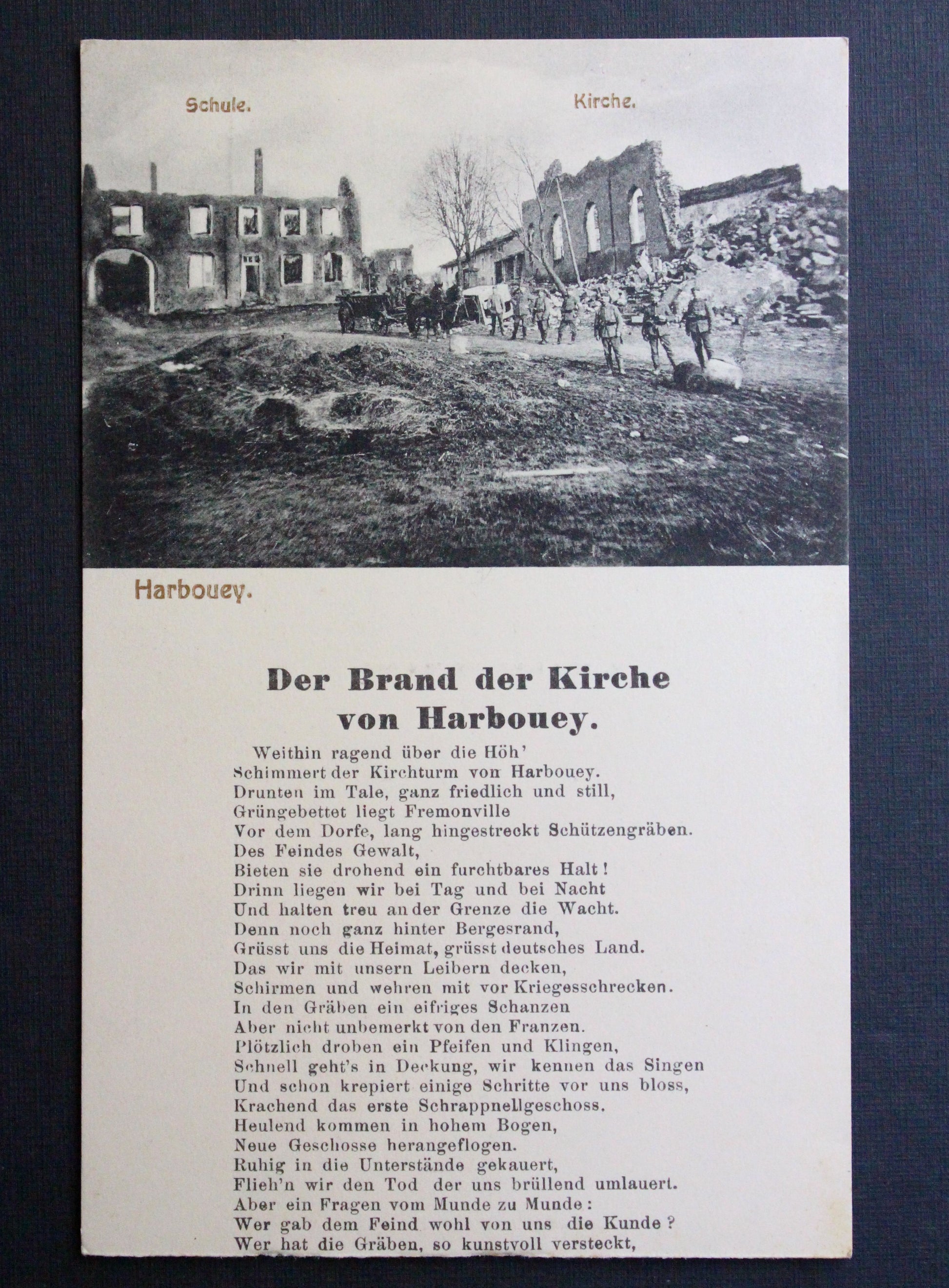 Válečná pohlednice Harboueye Der Brand der Kirche von Harbouey