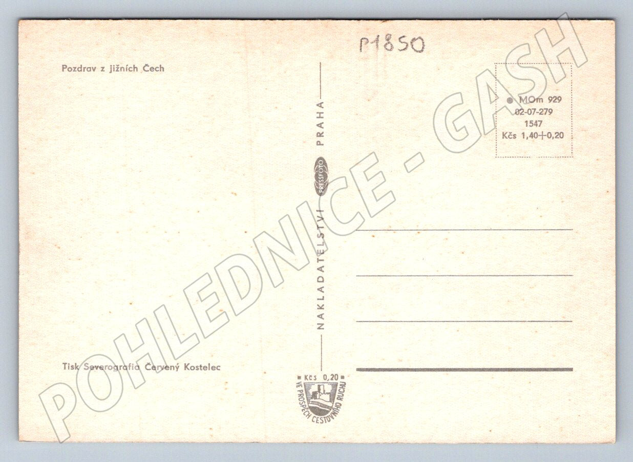 Barevná pohlednice s názvem Jihočeský kraj zobrazuje mapu jižních Čech s vyznačením a fotografiemi významných měst regionu: Písek, Tábor, Pelhřimov, Strakonice, České Budějovice, Český Krumlov, Jindřichův Hradec a Prachatice. Každé město je doplněno svým znakem na spodní straně pohlednice. Na zadní straně je vytištěn nápis Pozdrav z jižních Čech. Pohlednice je nevyplněná, dobře zachovalá, ideální pro sběratele českých regionálních pohlednic. Rozměr pohlednice odpovídá menšímu formátu, vydavatel Presfoto Praha.