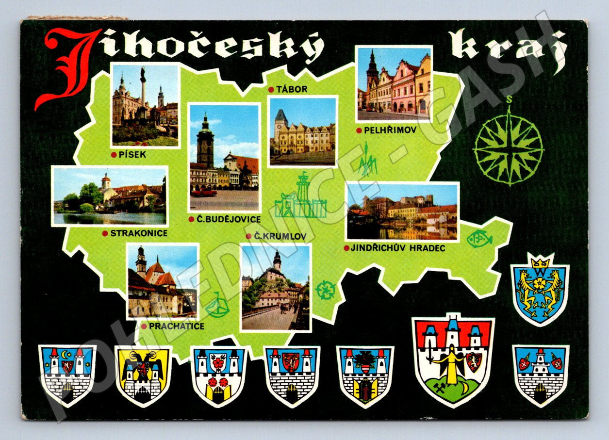 Pohlednice Jihočeský kraj mapa pamětihodnosti znaky měst (P1855)