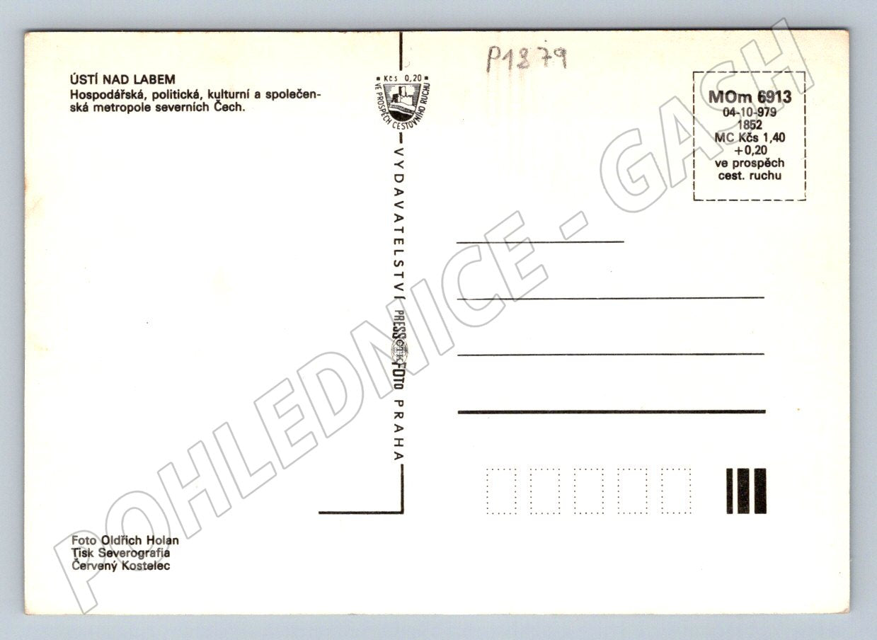 Originální pohlednice zobrazující město Ústí nad Labem, významnou hospodářskou, politickou, kulturní a společenskou metropoli severních Čech. Na přední straně najdete panoramatický letecký pohled na město a podrobnou mapu centra včetně vyznačených hlavních komunikací, mostů přes řeku Labe a městských zajímavostí. Nechybí ani detailní městský znak. Pohlednice je neprošlá, ve velmi dobrém stavu, vydaná nakladatelstvím Pressfoto Praha. Fotografie Oldřich Holan. Vhodné pro sběratele geografických pohlednic nebo zájemce o severočeský region.