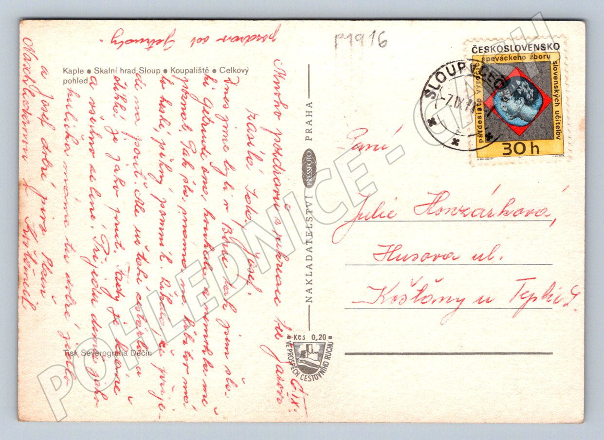 Pohlednice Sloup v Čechách – skalní hrad, koupaliště, koláž, 1971
