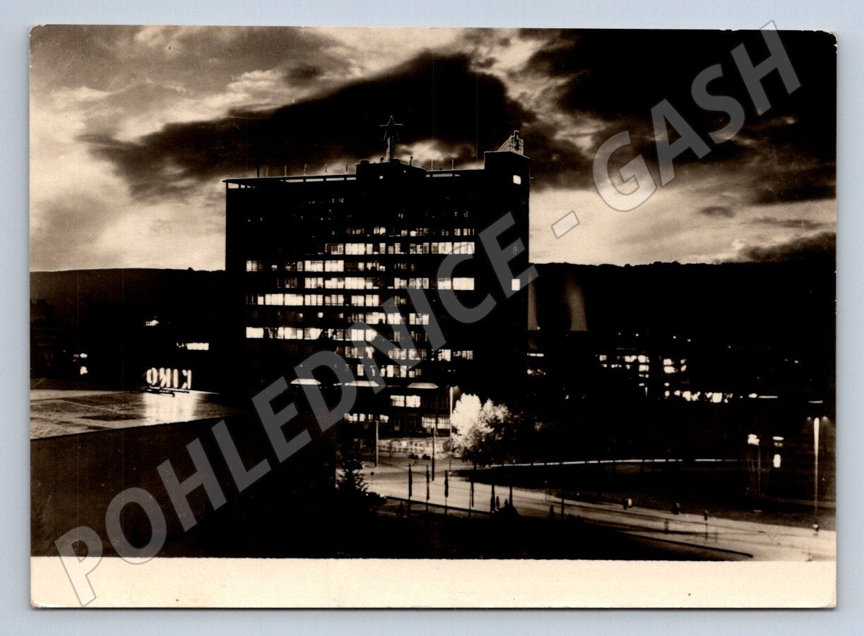 Pohlednice Gottwaldov SVIT 17patrová budova noční 1957 (P2016)