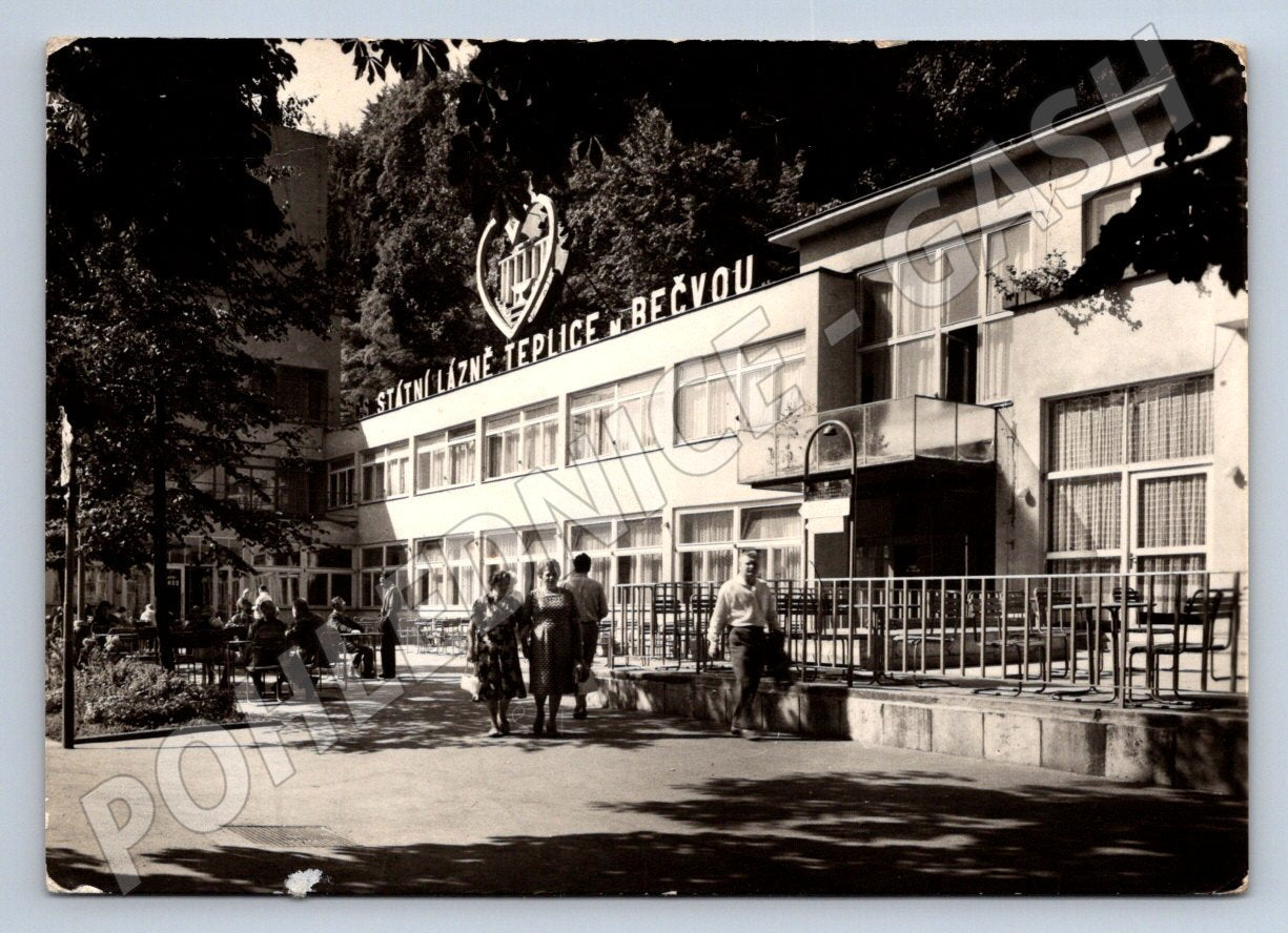 Originální stará černobílá pohlednice zachycující hlavní budovu státních lázní Teplice nad Bečvou. Pohlednice zobrazuje život před lázeňským domem, kde se procházejí a posedávají návštěvníci v příjemném prostředí zeleně. Na zadní straně naleznete popis města a služeb, ručně psané věnování, adresu i dobovou známku. Vydavatel Orbis Praha, foto A. Gribovský. Ideální přírůstek do sbírky pohlednic s motivem českých lázeňských měst. Výborný stav, mírné známky stáří, viz foto.
