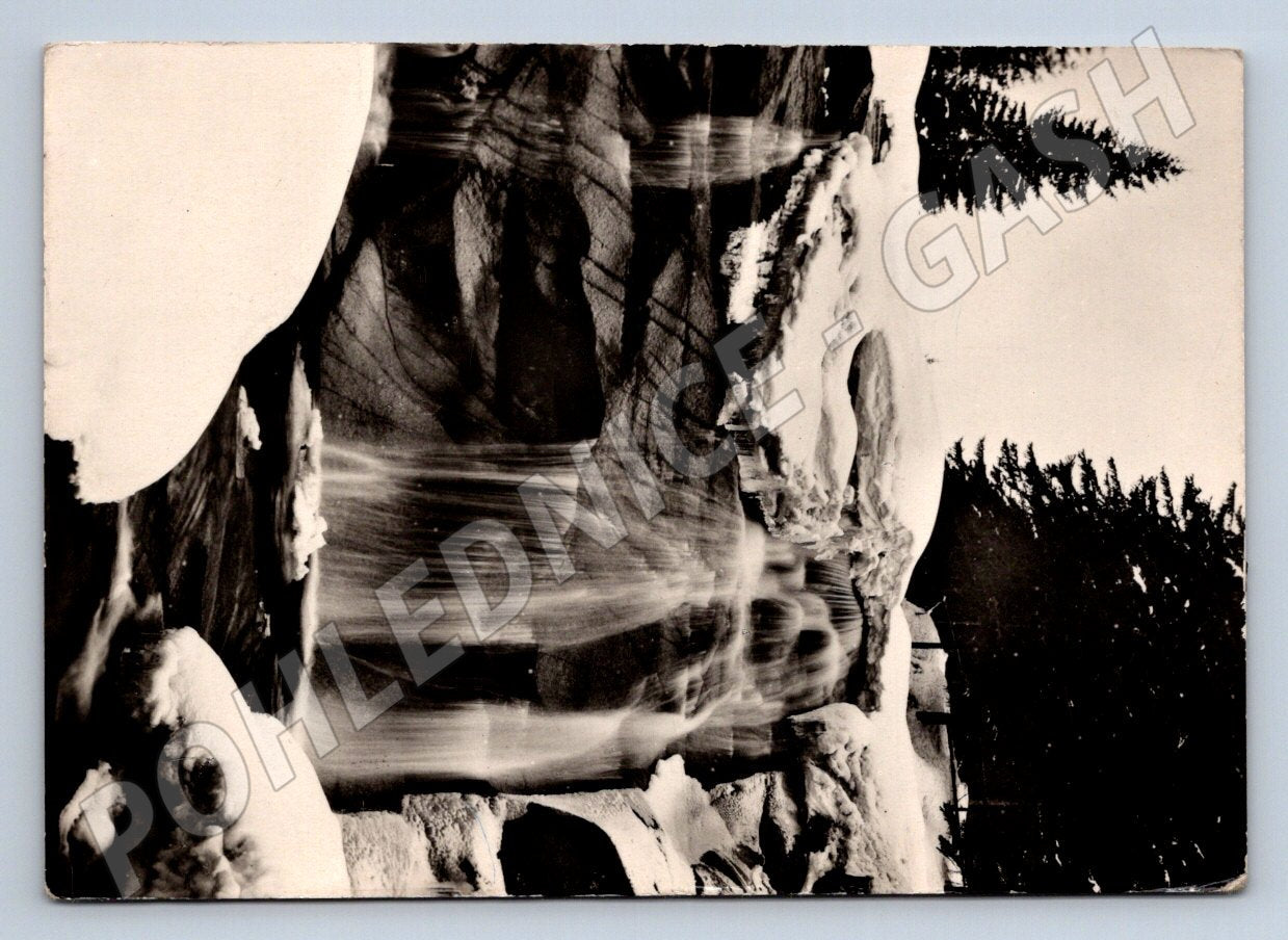 Originální, dobová pohlednice zobrazující ledový a zasněžený Mumlavský vodopád v Harrachově v Krkonoších. Pohlednice je černobílá a na zadní straně je ručně psaný pozdrav z dovolené, razítko a známka z období Československa. Foto B. Hájánek. Skvělý sběratelský kousek pro milovníky historických pohlednic s tematikou Krkonoš a přírodních krás České republiky.