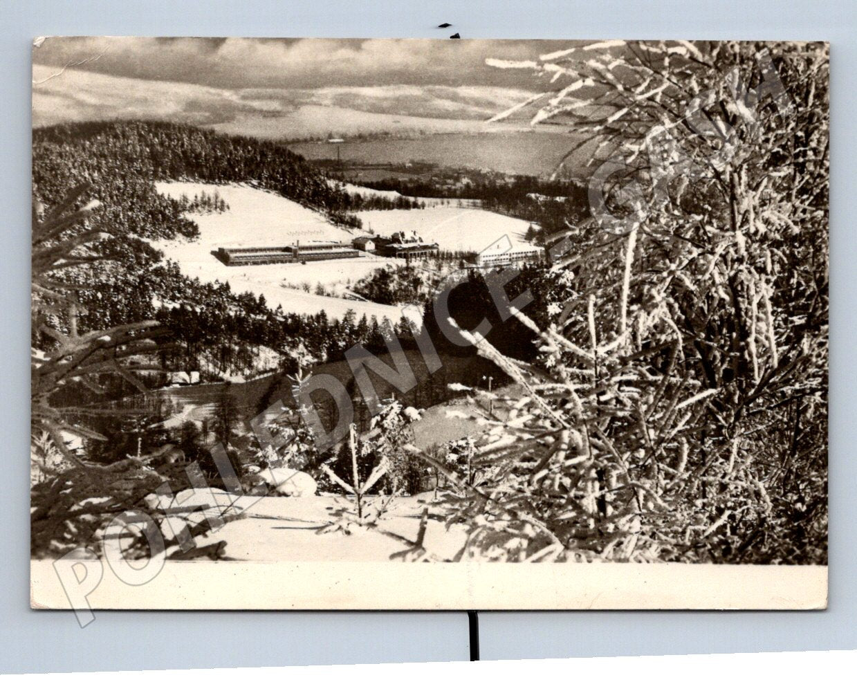Originální pohlednice s černobílým zimním motivem z oblasti Beskydy, konkrétně Frenštát pod Radhoštěm - zotavovna ROH Na Horéčkách. Na přední straně je zachycen zasněžený horský kraj s budovami a lesy kolem. Zadní strana obsahuje ručně psaný vzkaz z období Československa, doplněný dobovou známkou a razítkem. Pohlednice je vytištěna vydavatelstvím Orbis, v dolní části je nápis Radostný oddech budovatelů socialismu. Sbírkový stav, vhodné pro sběratele historických pohlednic z Moravskoslezského kraje, případně tematických oblastí socialistické historie nebo ROH rekreací.