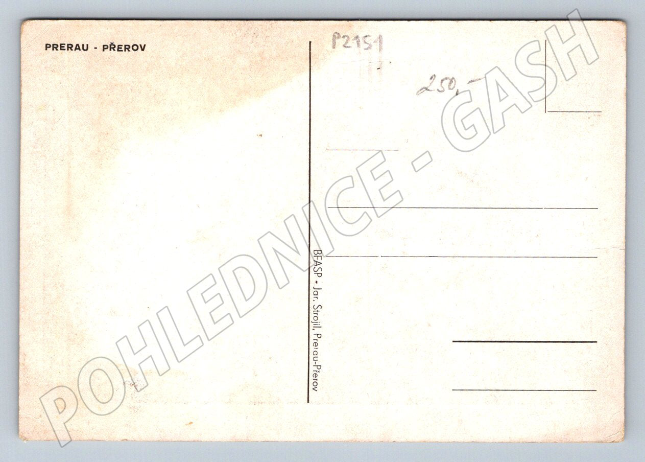 Historická pohlednice s černobílou fotografií části hradeb a staveb v Přerově. Na pohlednici je patrný pohled na starobylé zdivo a zbytky opevnění, v pozadí několik střech budov a věží. Zadní strana je nepopsaná, v horním rohu je natištěn nápis PRERAU - PŘEROV a označení vydavatele BFASP, Jar. Sitojl, Prerau-Přerov. Pohlednice pochází z první poloviny 20. století a je ve slušném sběratelském stavu s mírným opotřebením odpovídajícím stáří. Skvělý doplněk do sbírky pohlednic s tematikou historických měst a hradních staveb.