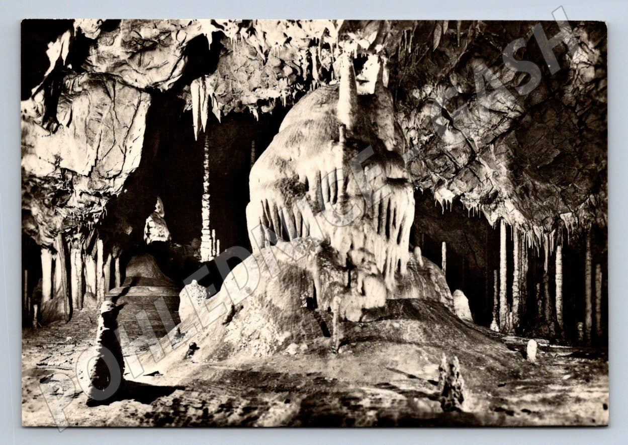 Originální historická pohlednice zachycující interiér slavné Kateřinské jeskyně v Moravském krasu. Pohlednice je černobílá, s výraznými krasovými útvary a stalagmity typickými pro tuto oblast. Vydavatel ORBIS, cena původně 0,60 Kčs. Zadní strana nenapsaná, jen katalogové a výrobní označení. Skvělý sběratelský kousek pro milovníky přírody, jeskyní a historických pohlednic z České republiky. Pohlednice je ve velmi dobrém stavu, bez viditelných poškození. Ideální do sbírky nebo jako dárek.