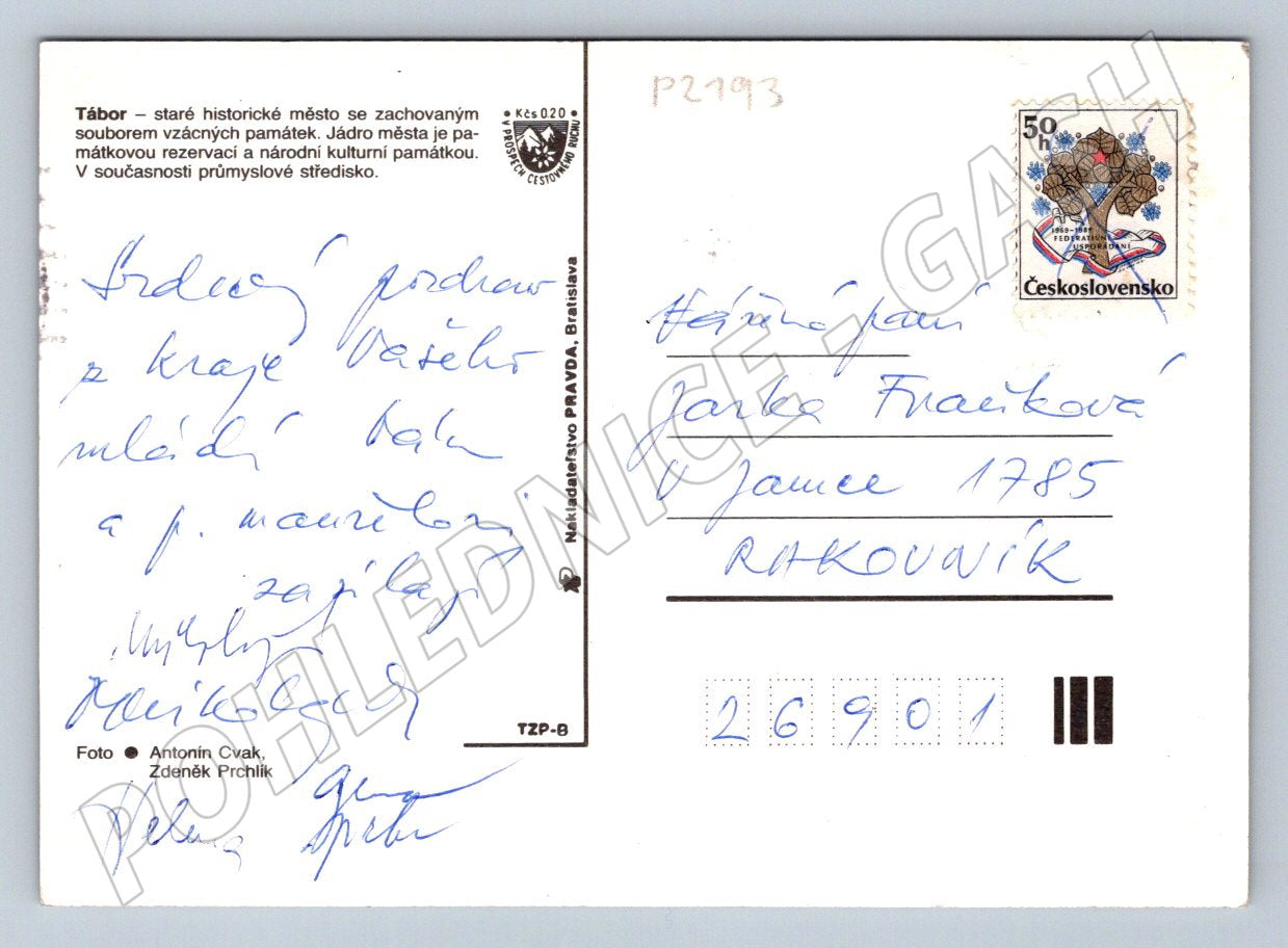 Stará pohlednice Tábor – historické centrum, před r. 1950