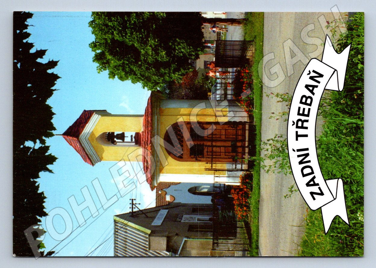 Nabízím originální pohlednici s motivem obce Zadní Třebaň. Na přední straně pohlednice je barevná fotografie dominanty vesnice a nápis Zadní Třebaň . Zadní strana je opatřena ručně psaným pozdravem z dovolené, známkou a razítkem. Pohlednice byla odeslána, je tedy orazítkovaná. Výrobu zajišťovala místní nezávislá obecní tiskovina, autorem fotografie je R. Tláskal. Pohlednice je ve velmi dobrém stavu, vhodná do sbírky, pro milovníky regionální historie, nebo jako vzpomínka na tuto rekreační oblast v okolí Berounky a Karlštejna.