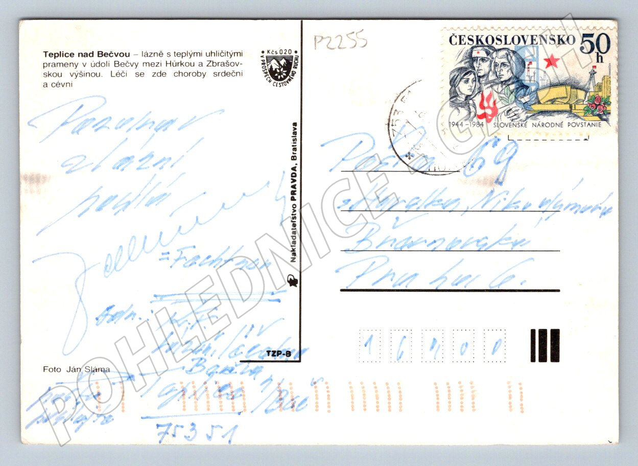 Originální pohlednice Teplice nad Bečvou, zobrazující lázeňské město a jeho okolí v údolí řeky Bečvy. Na přední straně je koláž fotografií významných míst lázní včetně budov, zeleně a pěších cest. Pohlednice je prošlá poštou, opatřená dobovou známkou a ručně psaným textem. Krátký popis na zadní straně přibližuje historicky významné lázně s léčivými prameny zaměřené na srdeční a cévní onemocnění. Tato pohlednice je vhodná pro sběratele i milovníky historie a lázeňství.