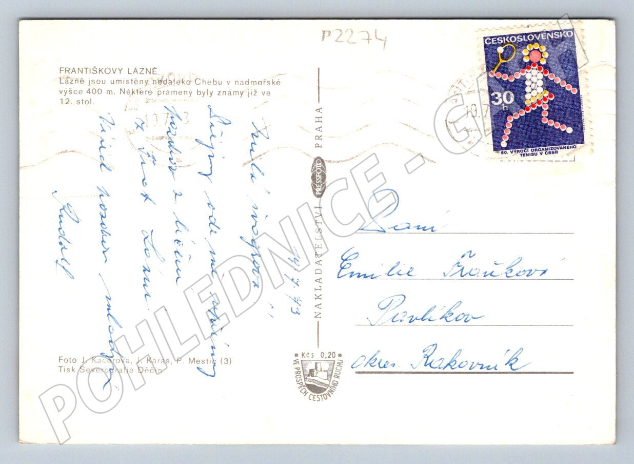 Pohlednice Františkovy Lázně – více záběrů, známka, ručně psáno