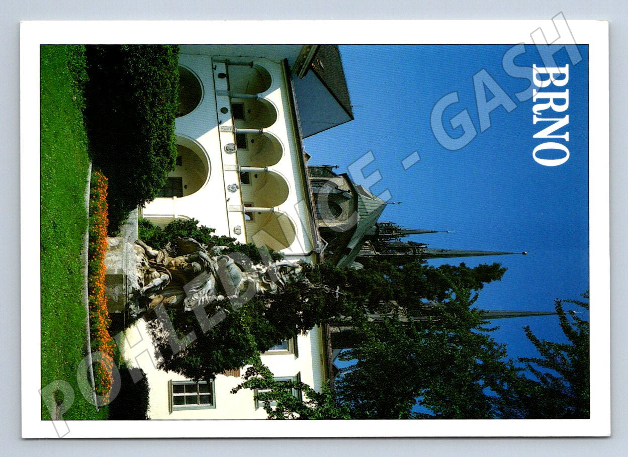 Originální pohlednice z Brna s fotografií nádvoří Zemského muzea, v pozadí s dominantou chrámu sv. Petra a Pavla. Pohlednice byla vytištěna po roce 1950 a jedná se o velký formát. Na přední straně je krásná, barevná fotografie s modrou oblohou a sochařskou výzdobou nádvoří. Zadní strana je popsána, opatřena razítkem i známkou z České republiky. Ideální sběratelský kus nebo vzpomínka na Brno.