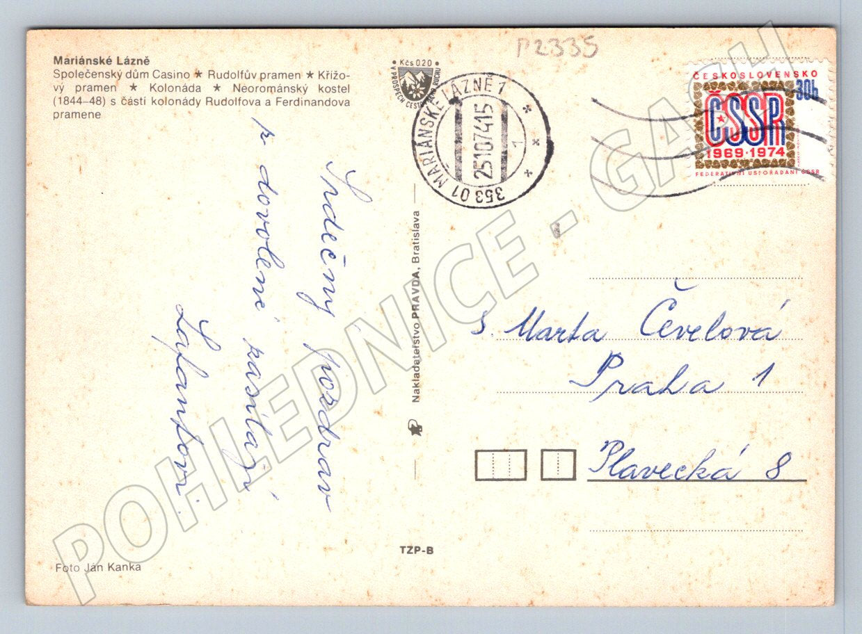 Pohlednice Mariánské Lázně – více pohledů, Československo, popsaná