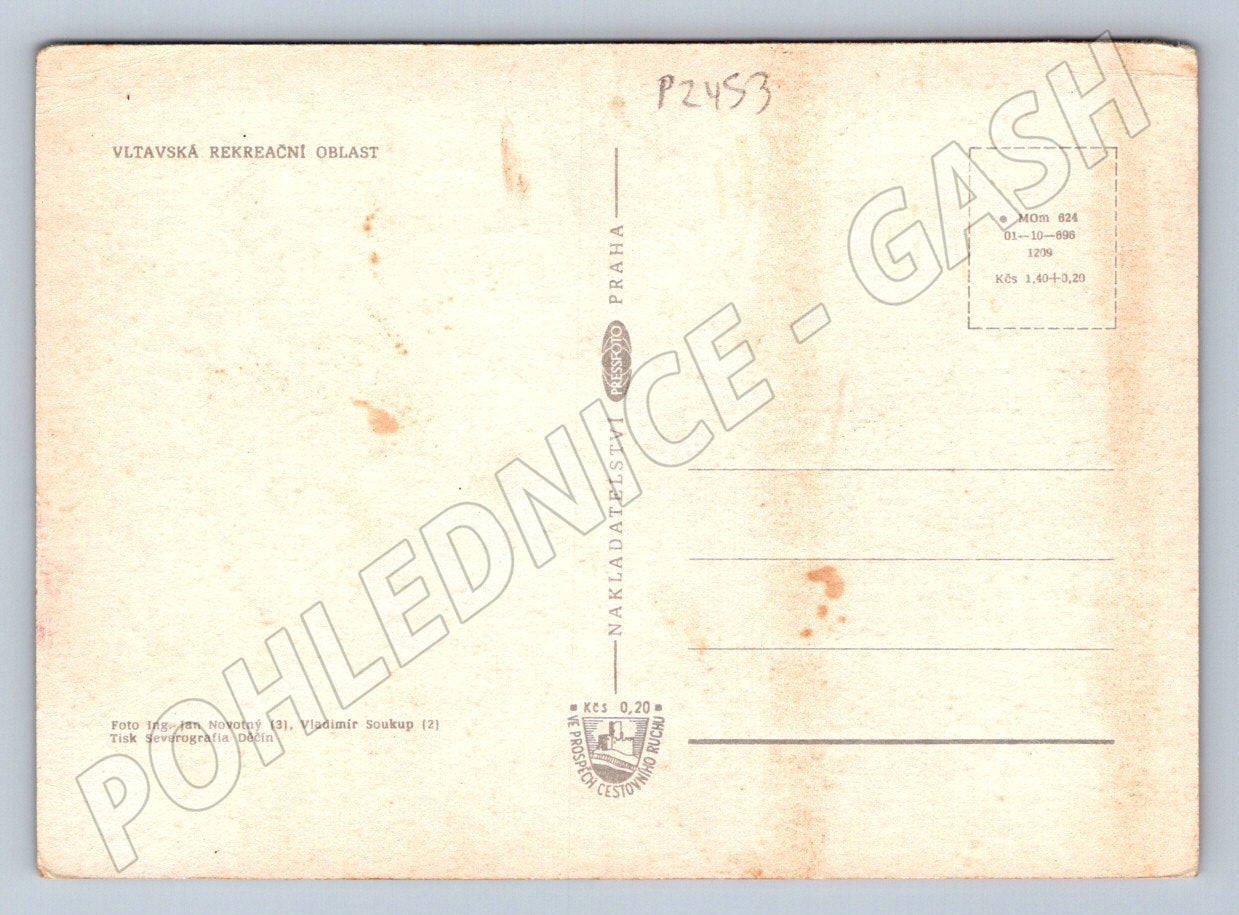 Originální pohlednice zobrazující rekreační oblast řeky Vltavy – Štěchovice, Davle a Slapy. Pohlednice nabízí několik barevných fotografií malebné krajiny s řekou, lodní dopravou a okolní přírodou. Na zadní straně není psaná ani odeslaná, je pouze drobně zašlá a má několik skvrnek, odpovídajících stáří. Vydává nakladatelství Praha. Číslo pohlednice: MOM 824, tisk Severografia Děčín. Vhodná pro sběratele nebo jako jedinečný retro dárek.