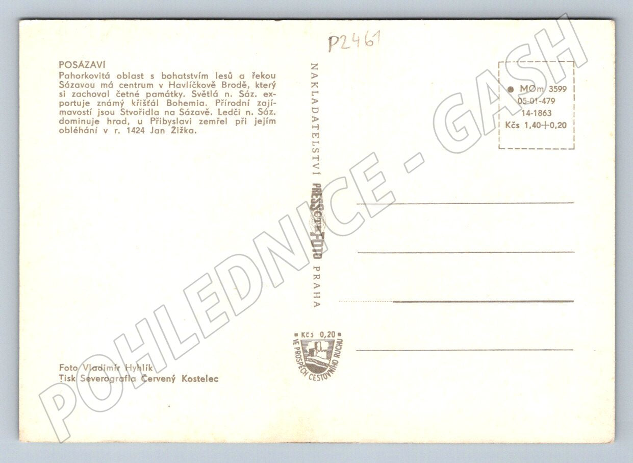 Originální pohlednice s motivem Posázaví, zobrazující významná místa regionu včetně Ledče nad Sázavou, Světlé nad Sázavou, Přibyslavi, Havlíčkova Brodu a přírodní zajímavosti Stvořidla. Barevná koláž míst na mapě řeky Sázavy zachycuje pamětihodnosti a přírodu oblasti. Na zadní straně najdete krátký text o historii a zajímavostech Posázaví. Pohlednice je ve velmi dobrém stavu, vhodná do sbírky nebo jako dekorace. Autorem fotografie je Vladimír Hyhlík, tisk Severografia Červený Kostelec.