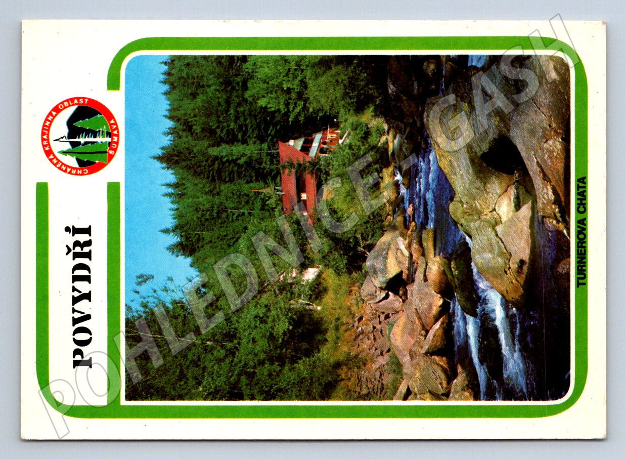 Originální pohlednice z oblasti Povydří na Šumavě, znázorňující Turnerovu chatu u ústí Zhůřského potoka. Tato rekreační chata poskytuje plnou možnost pobytu v krásné šumavské přírodě a je obklopena malebnou krajinou s čistými vodami řeky Vydry, kde vytváří četné peřeje a kaskády. Pohlednice je vydaná nakladatelstvím Orbis Praha, tisk Severografia Velký Šenov, foto J. Hepner. Na zadní straně krátký popis a místo pro známku a zprávu. Perfektní pro sběratele i milovníky Šumavy a přírodních lokalit.