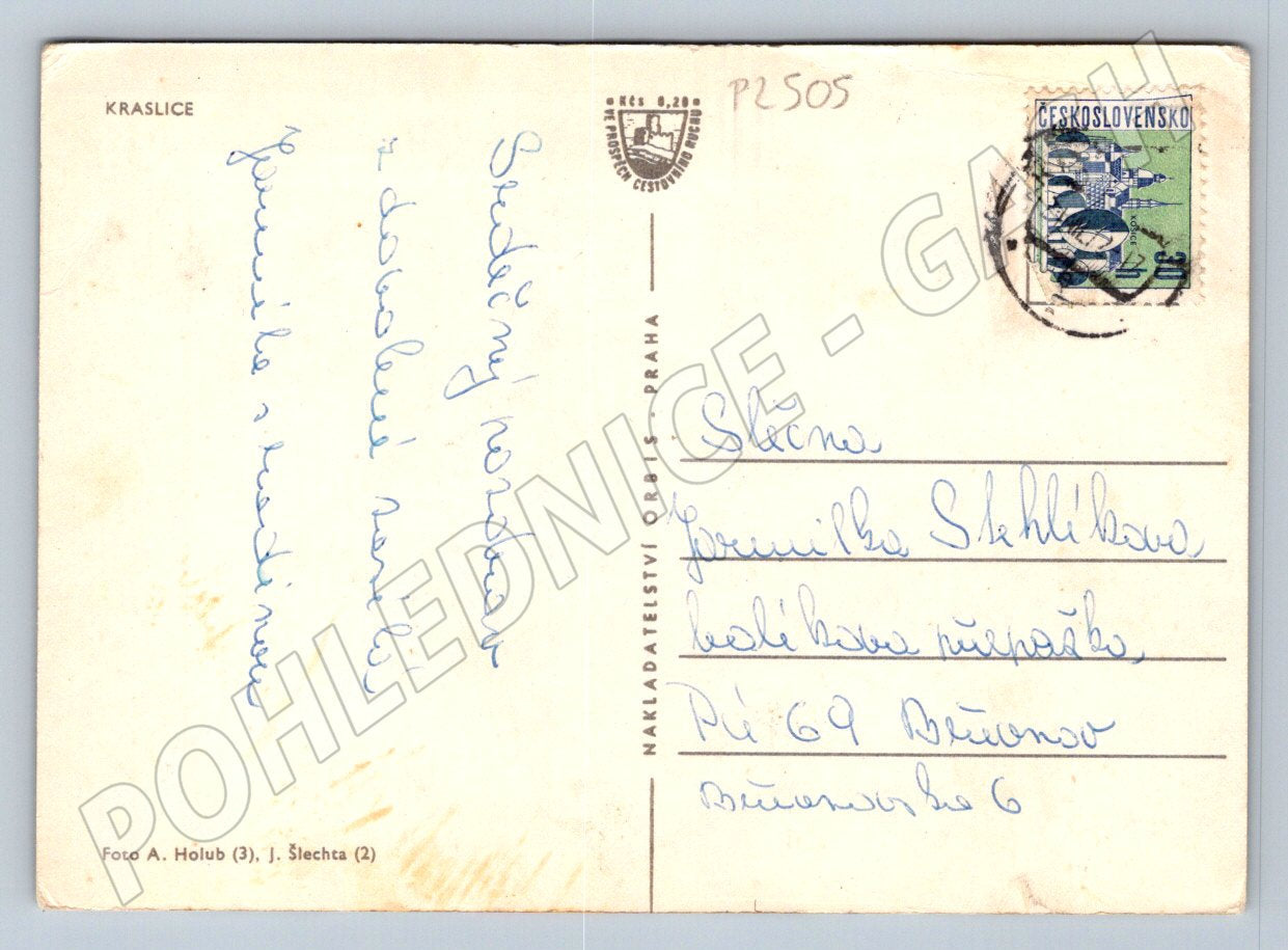 Pohlednice Kraslice – více záběrů, prošlá poštou