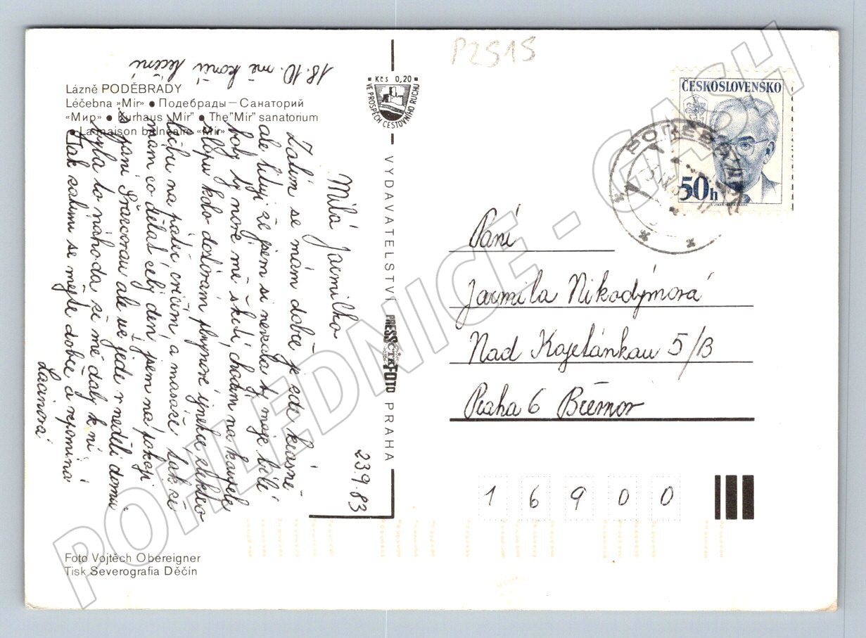 Poděbrady – Lázeňský dům Mír, historická pohlednice 1973
