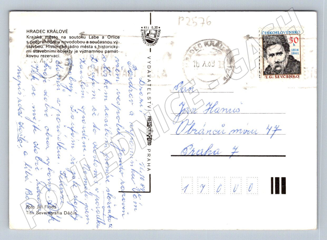 Hradec Králové – noční pohlednice, více záběrů, razítkovaná