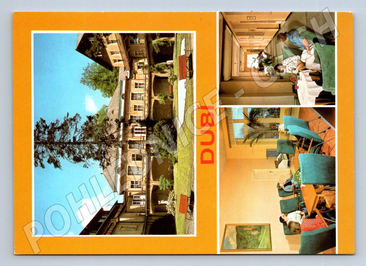 Nabízím pohlednici lázeňského města Dubí, které se nachází na úpatí Krušných hor. Pohlednice zobrazuje budovu lázní, interiér s posezením, společenskou místnost a hosty v typickém lázeňském prostředí konce 20. století. Vydavatelem je Pressfoto Praha, tisk Severografia Červený Kostelec. Revers je nepopsaný, s předtištěnou známkou a popisem. Výborný sběratelský stav, krásná ukázka dobové architektury a atmosféry českých lázní.
