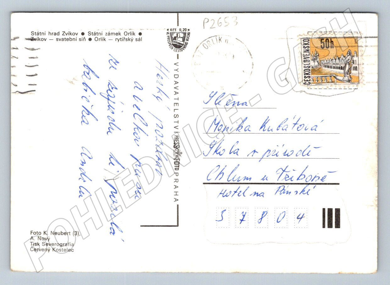Pohlednice Zvíkov a Orlík – hrady a zámky, odeslaná, ČSSR