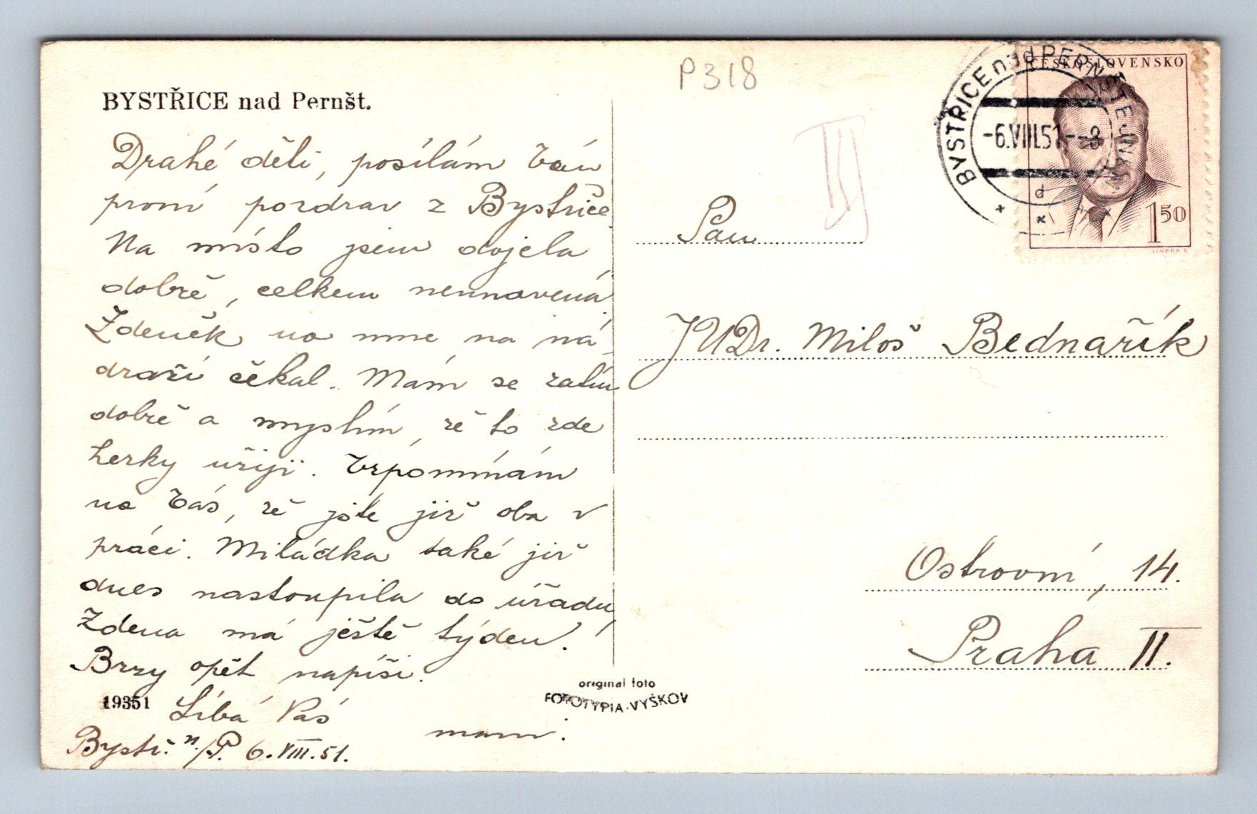 Pohlednice BYSTŘICE nad Pernšt (P318)