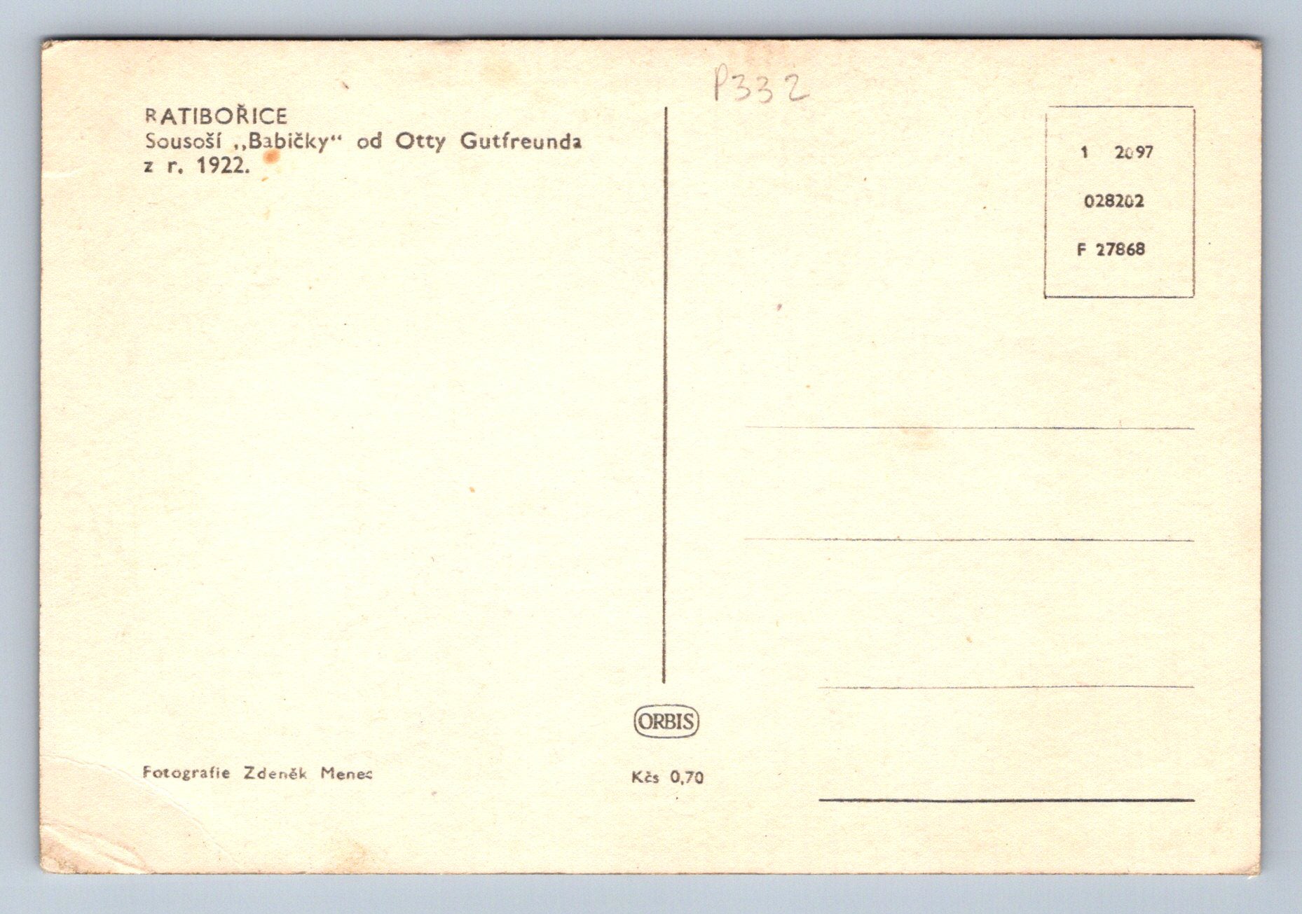 Pohlednice Ratibořice - Sousoší BABIČKY od Otty Gutfreunda (P332)