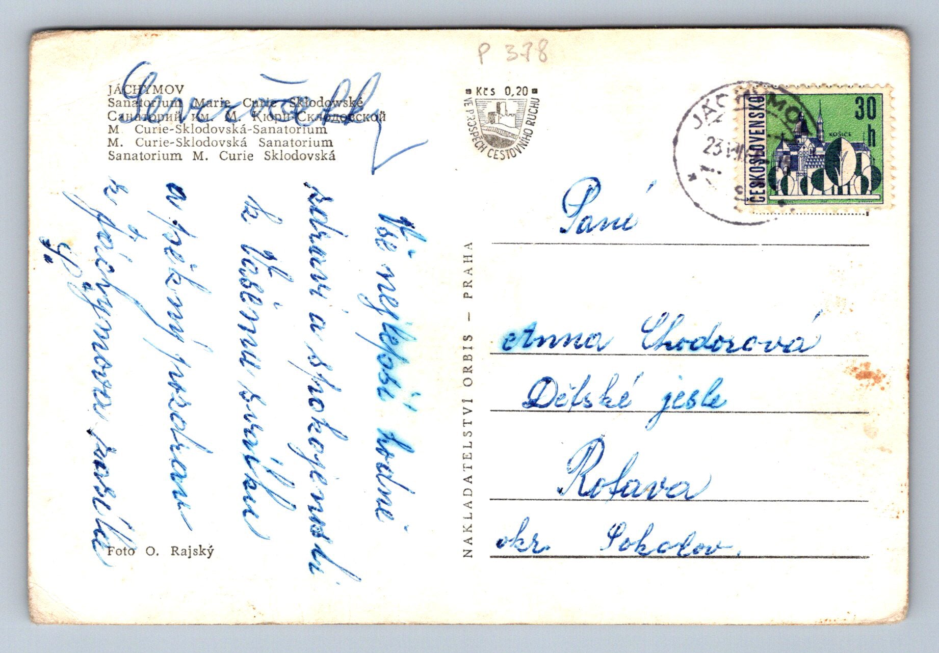 Pohlednice JÁCHYMOV Sanatorium Marie Curie (P378)