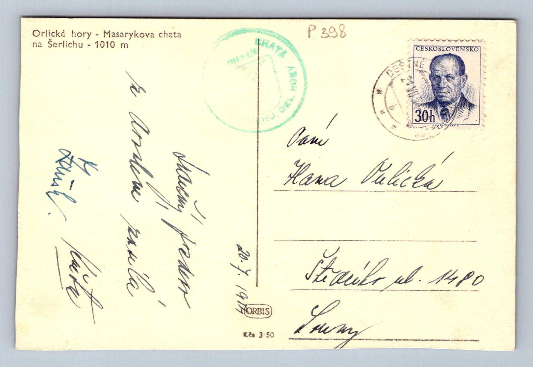 Pohlednice Orlické hory - Masarykova chata na Šerlichu (P398)