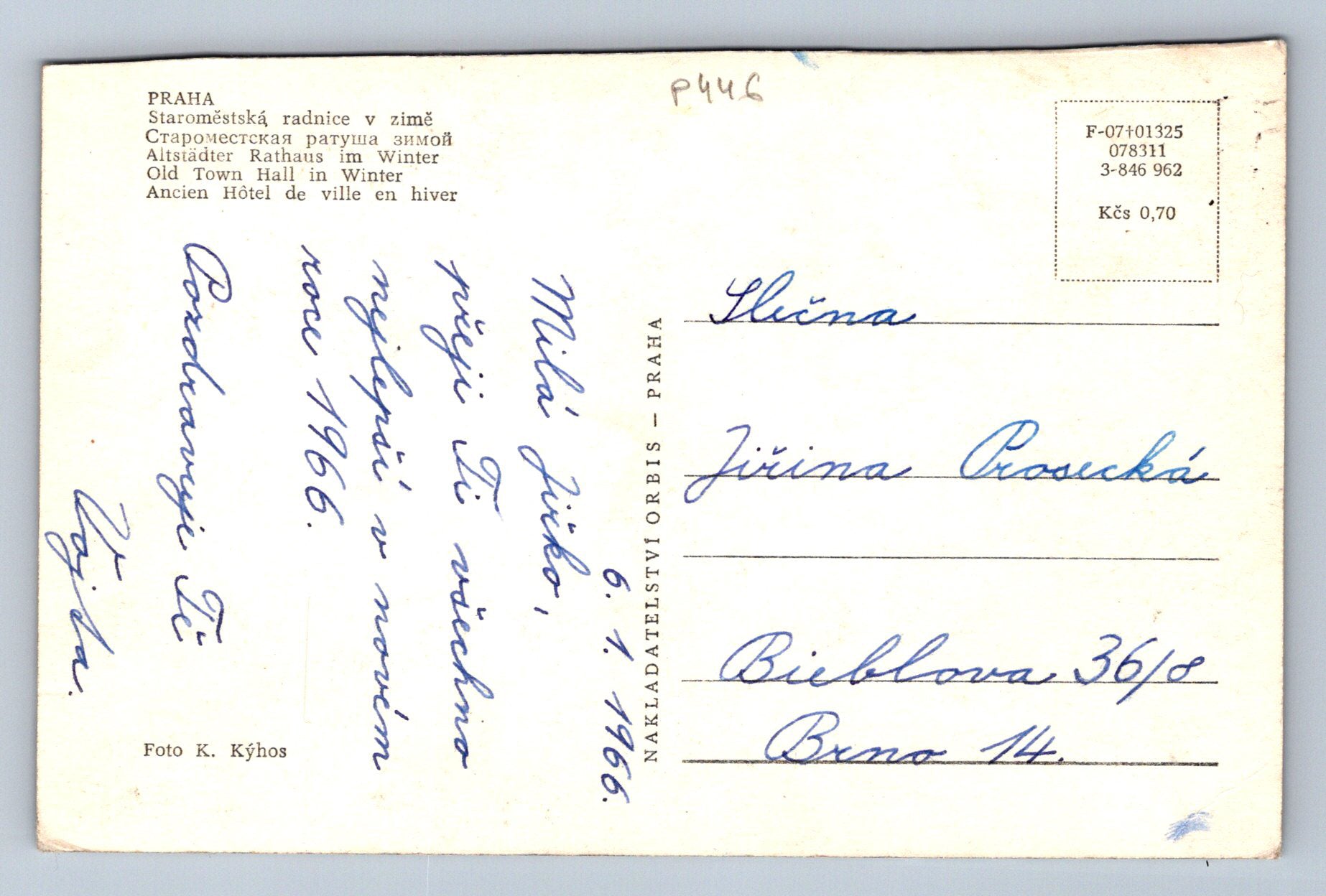 Pohlednice PRAHA - Staroměstská radnice v zimě (P446)
