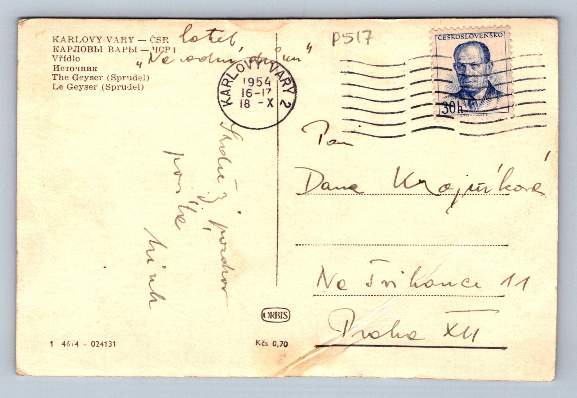 Pohlednice KARLOVY VARY - ČSR - vřídlo (P517)