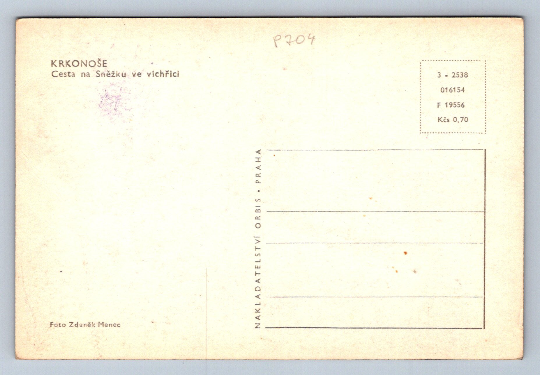 Pohlednice KRKONOŠE - cesta na Sněžku ve vichřici (P704)