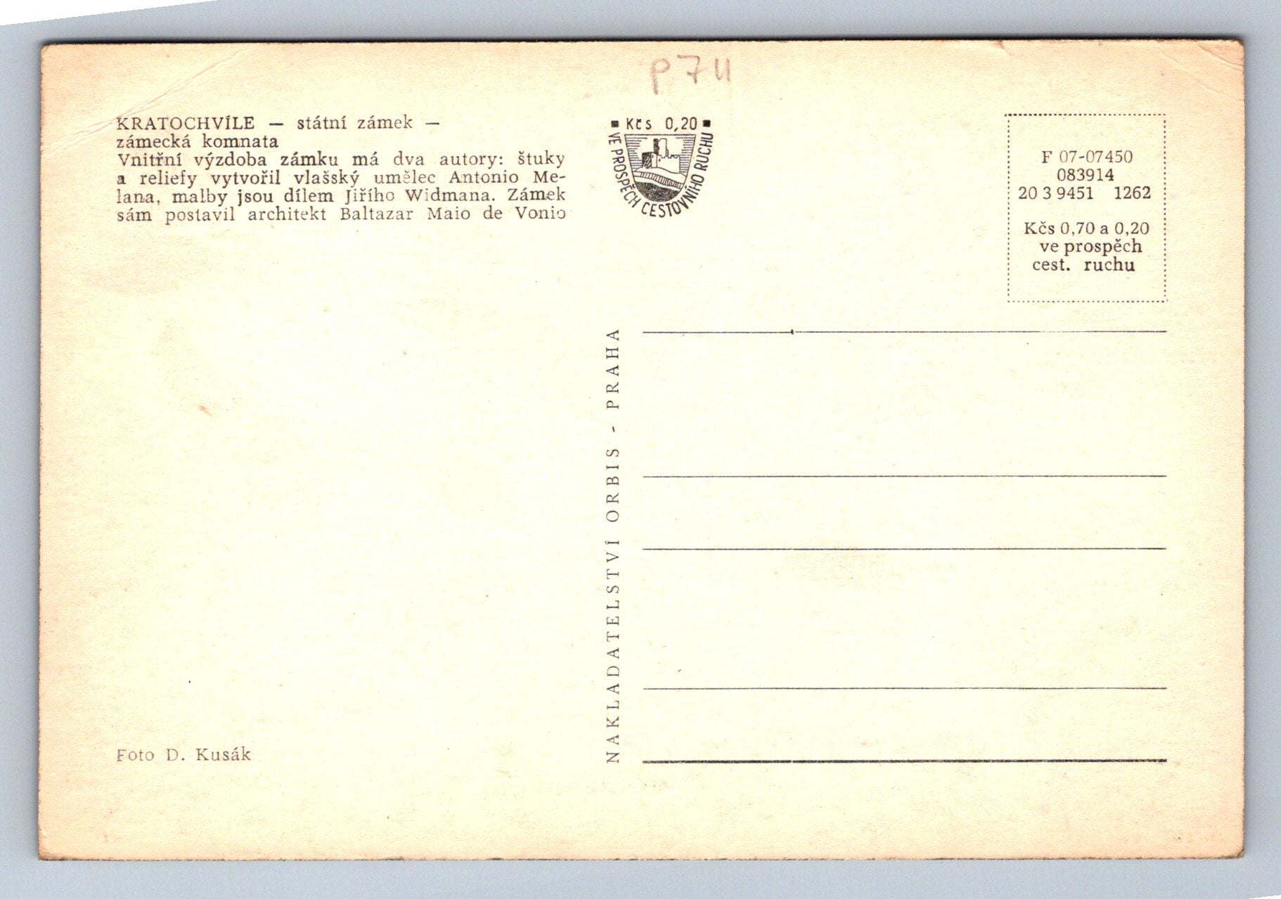 Pohlednice KRATOCHVÍLE - státní zámek - zámecká komnata (P711)