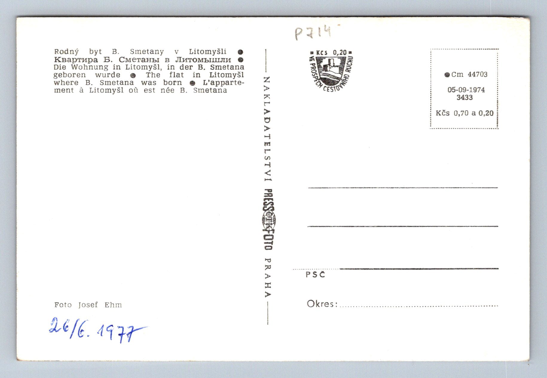 Pohlednice Rodný byt B. Smetany v Litomyšli (P714)