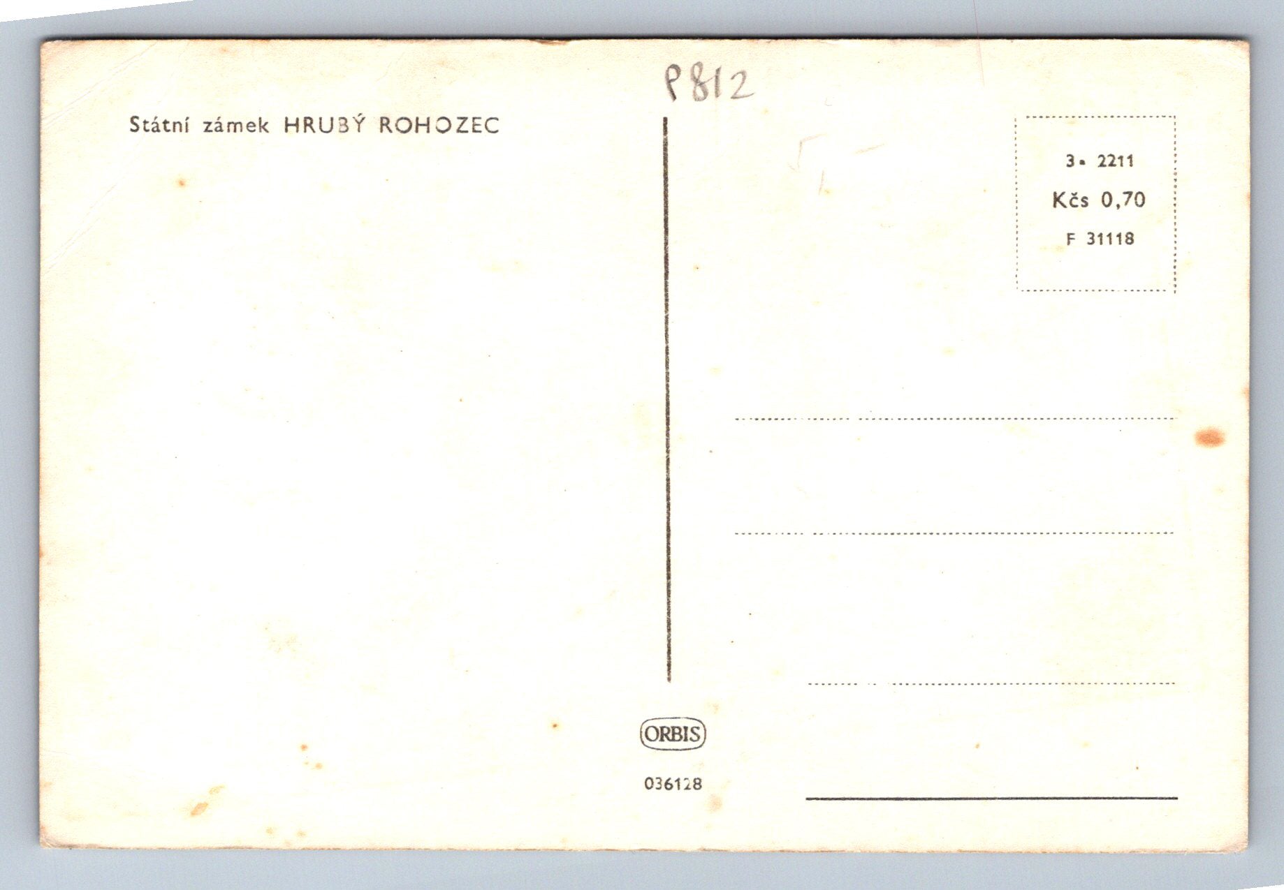 Pohlednice Státní zámek HRUBÝ ROHOZEC (P812)