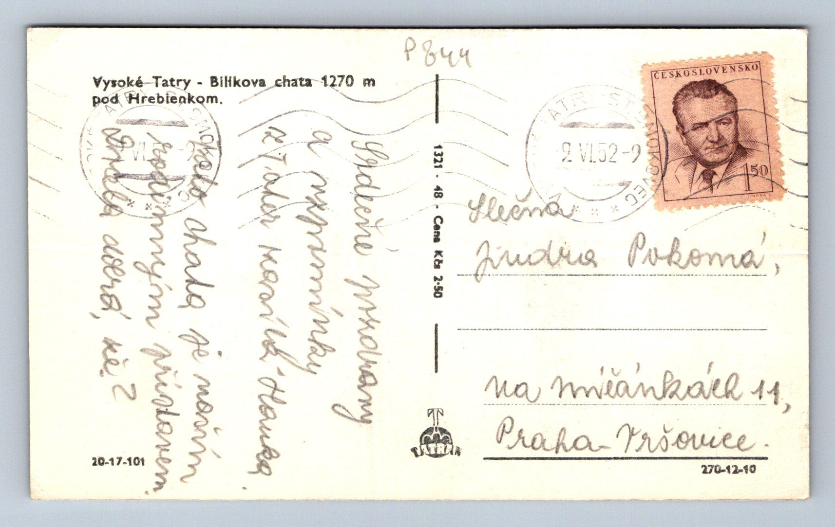 Pohlednice Vysoké Tatry - Bilíkova chata 1270 m pod Hrebienkom (P844)