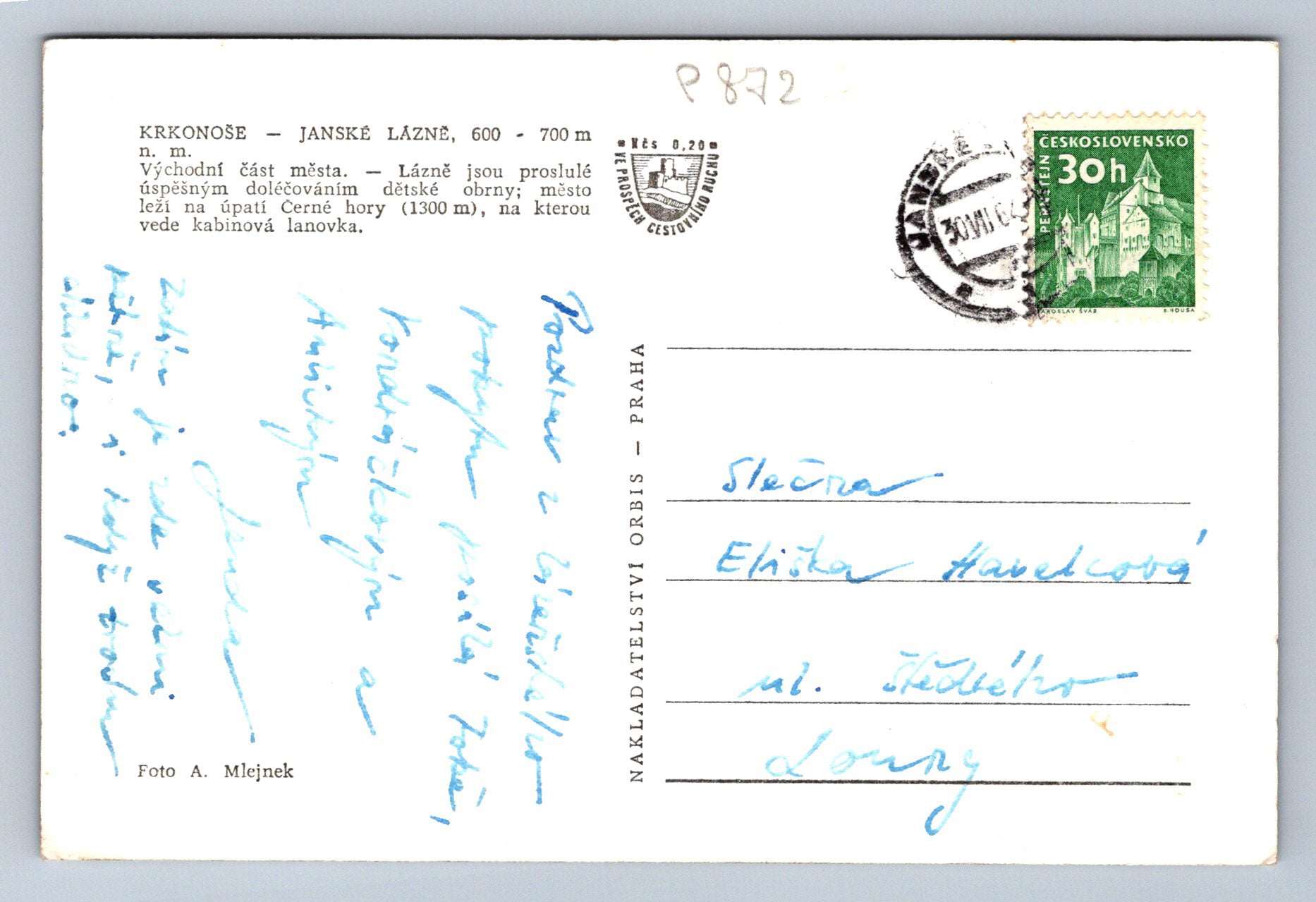 Pohlednice KRKONOŠE - JANSKÉ LÁZNĚ - východní část města (P872)