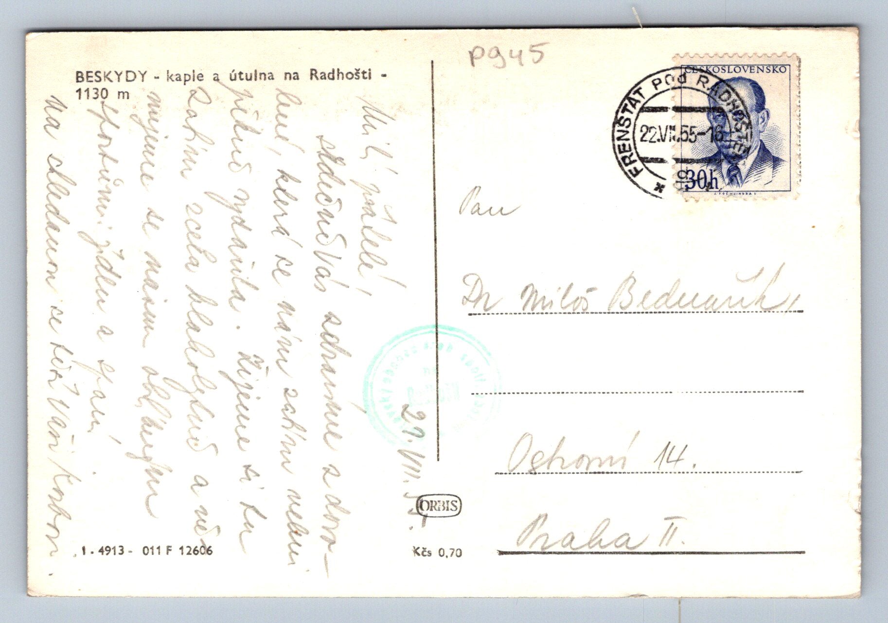 Pohlednice BESKYDY - kaple a útulna na Radhošti - 1130 m. (P945)