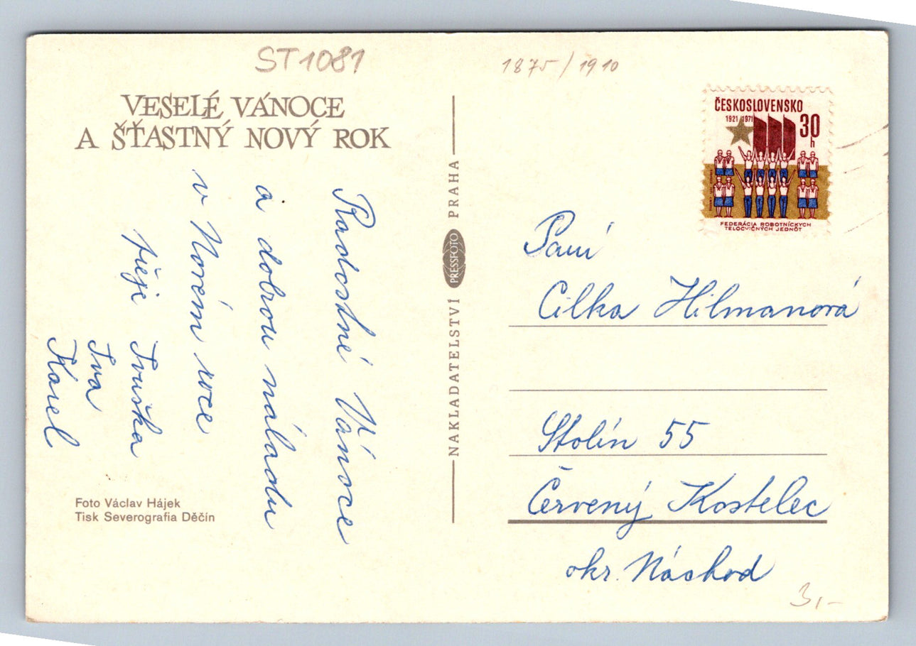 Pohlednice VESELÉ VÁNOCE A ŠŤASTNÝ NOVÝ ROK (ST1081)
