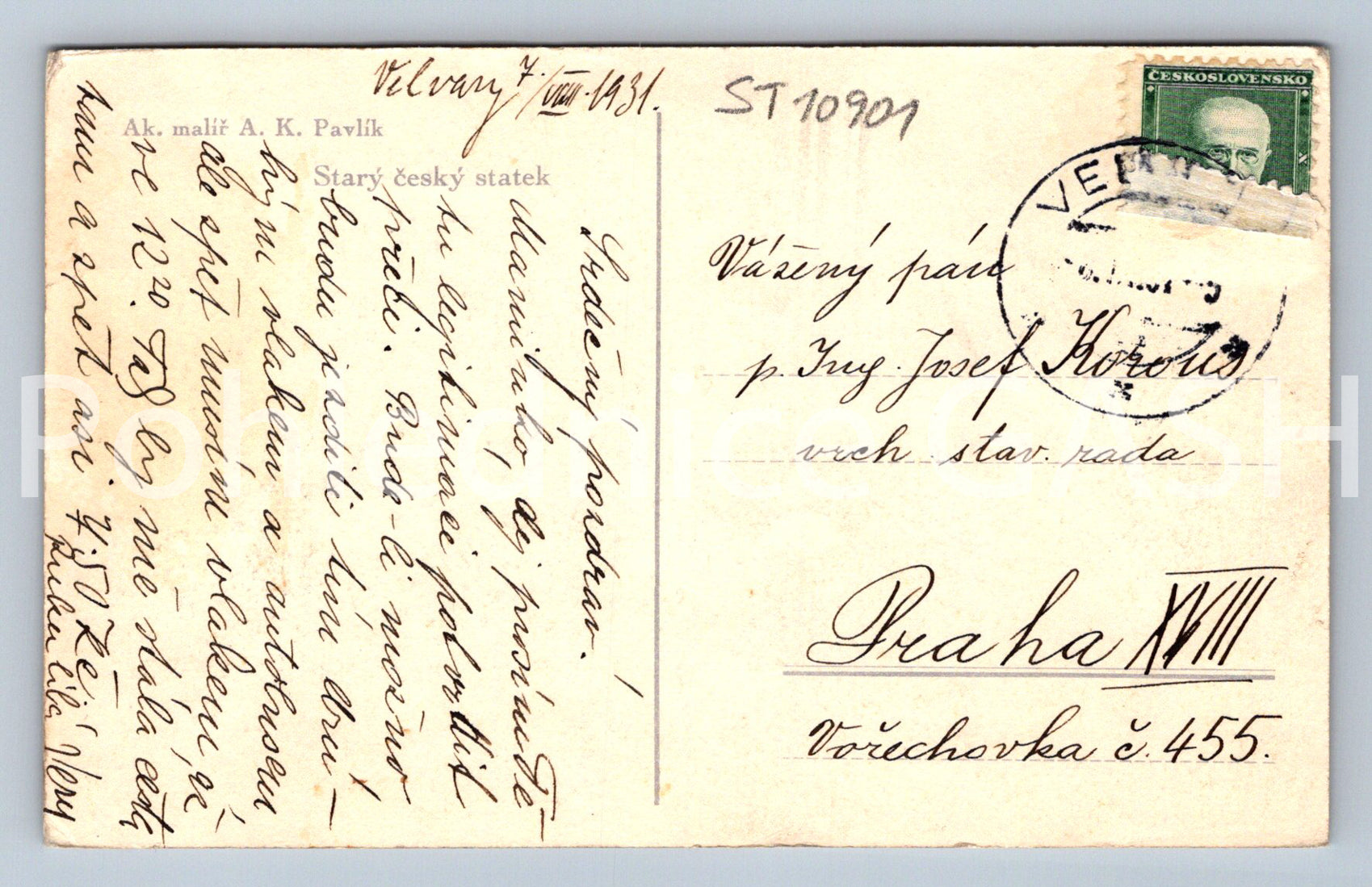 Pohlednice AK. MALÍŘ A. K. PAVLÍK - STARÝ ČESKÝ STATEK (ST10901)