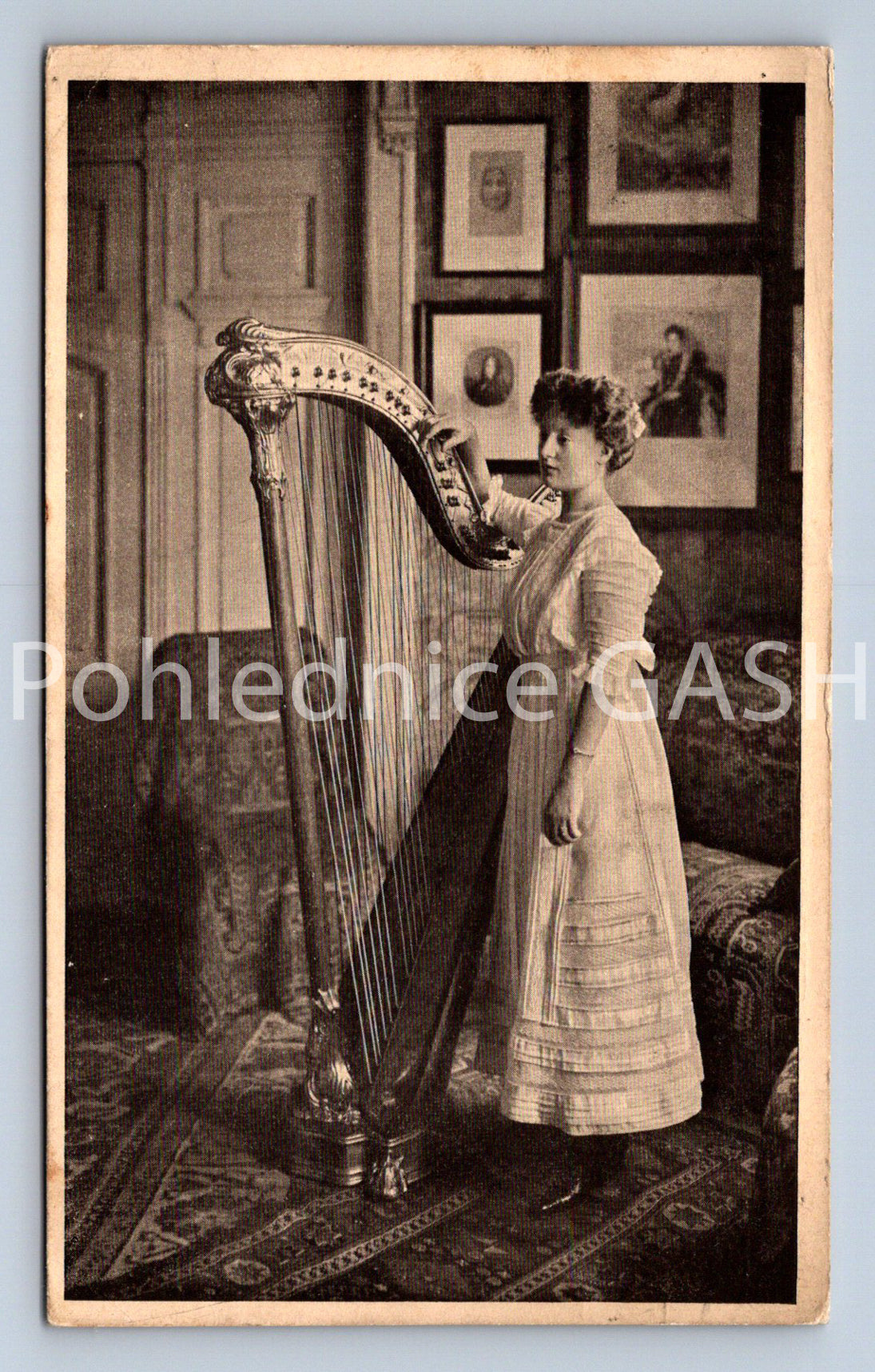 Pohlednice ŽENA A HARFA (ST10932)