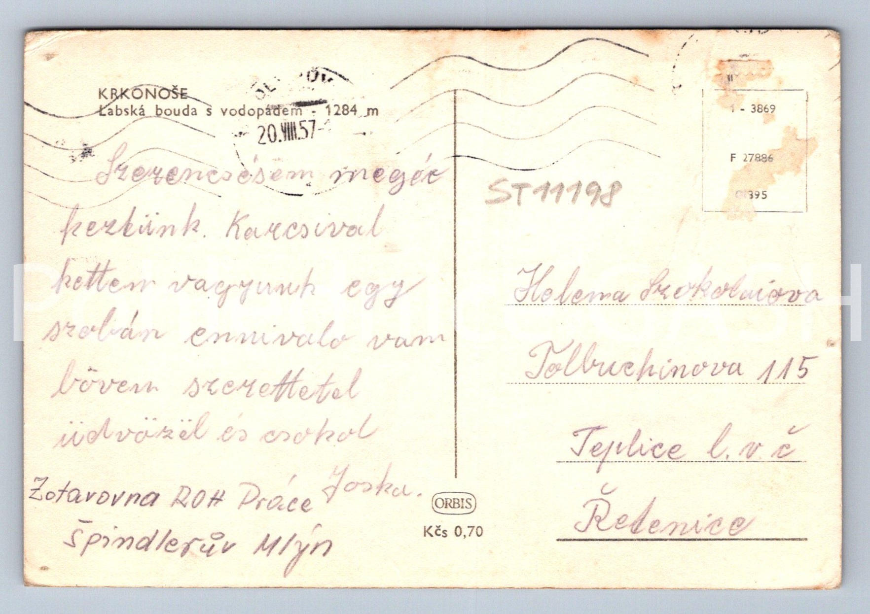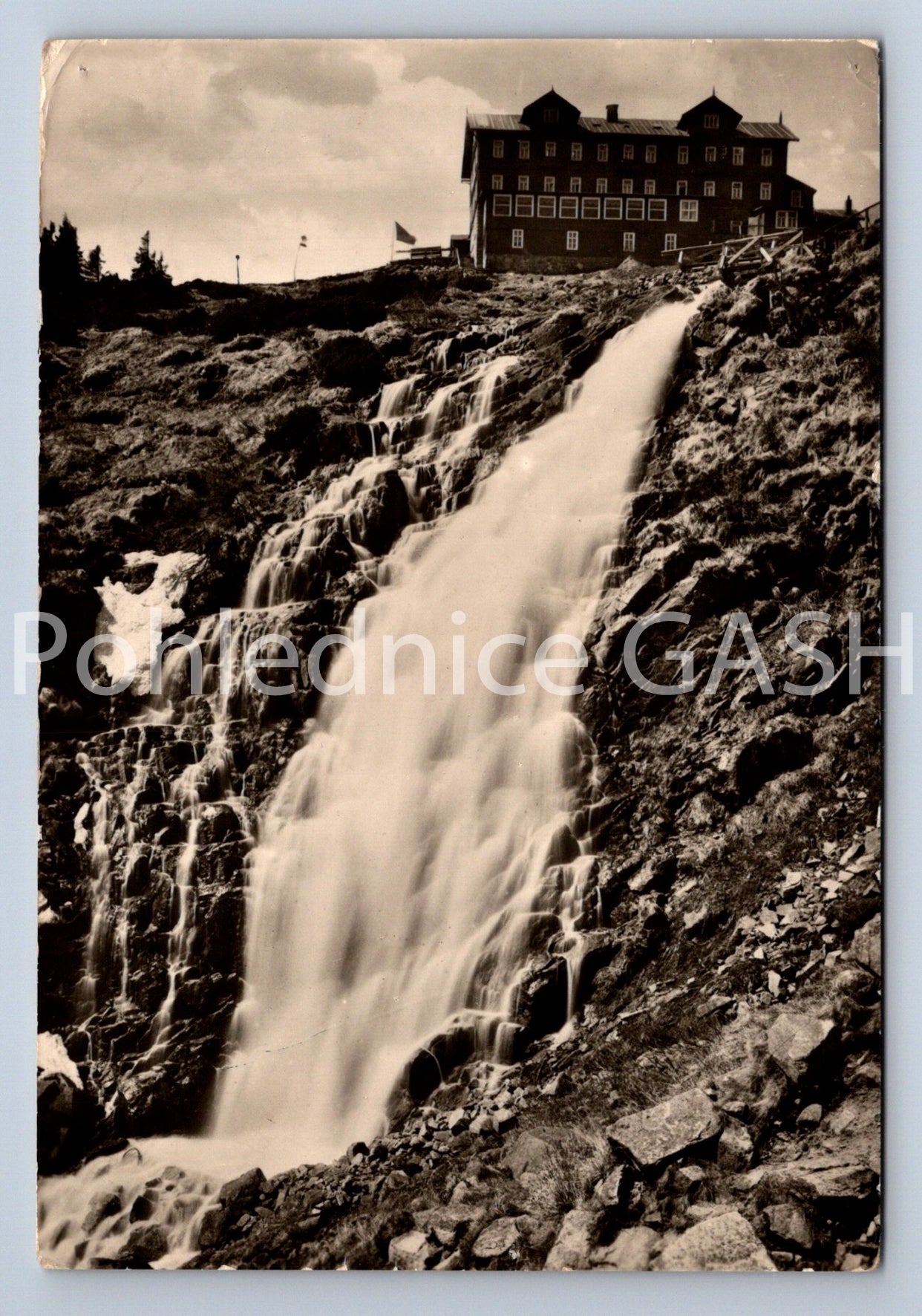 Pohlednice KRKONOŠE - LABSKÁ BOUDA S VODOPÁDEM (ST11198)