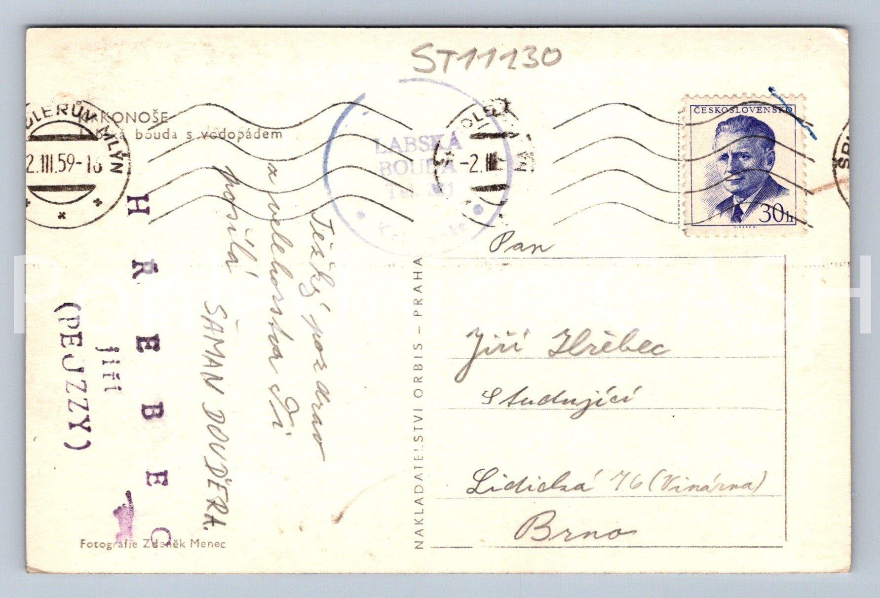 Pohlednice KRKONOŠE - LABSKÁ BOUDA S VODOPÁDEM (ST11230)