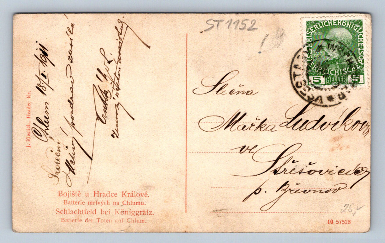 Pohlednice BOJIŠTĚ U HRADCE KRÁLOVÉ BATTERIE MRTVÝCH NA CHLUMU(ST1152)