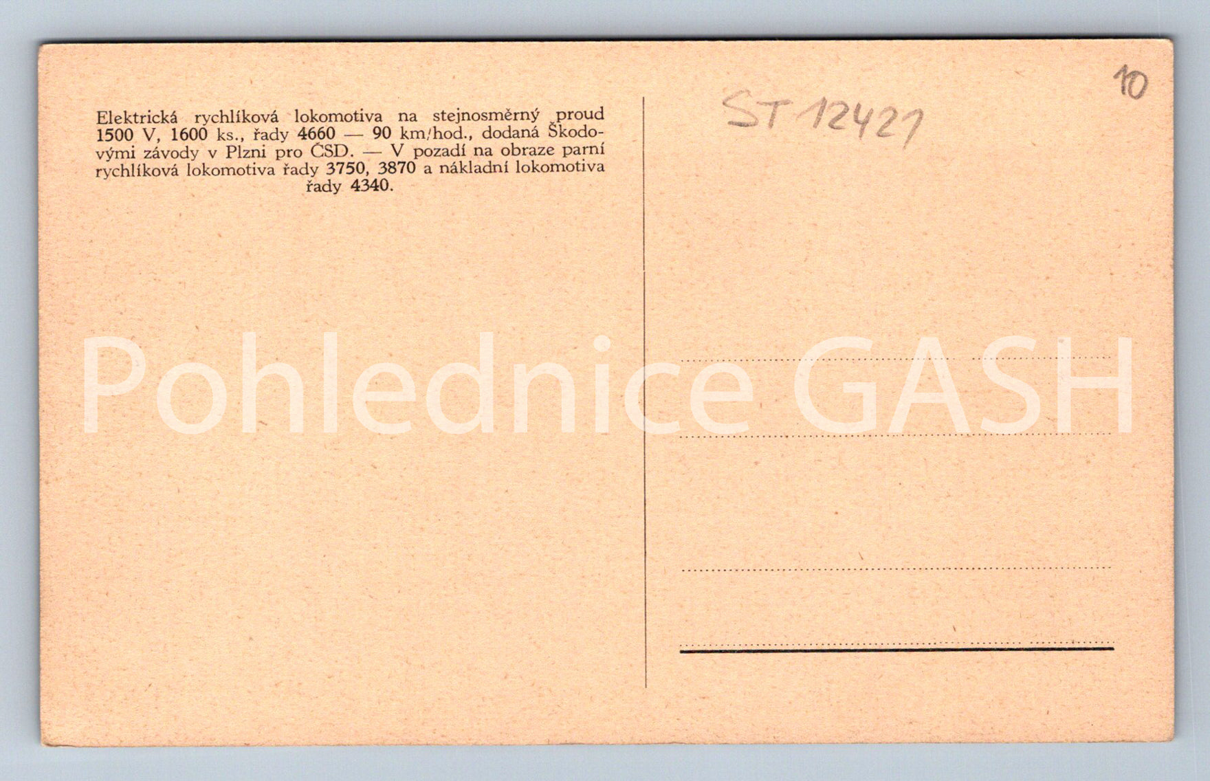 Pohlednice ELEKTRICKÁ RYCHLÍKOVÁ LOKOMOTIVA NA STEJNOSMĚRNÝ (ST12421)