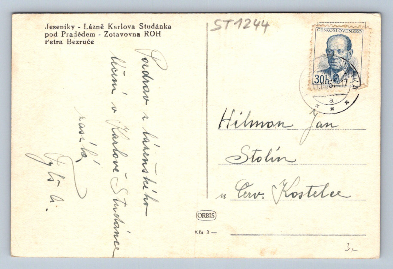 Pohlednice JESENÍKY - LÁZNĚ KARLOVA STUDÁNKA POD PRADĚDEM - ZOTAVOVNA ROH PETRA BEZRUČE (ST1244)