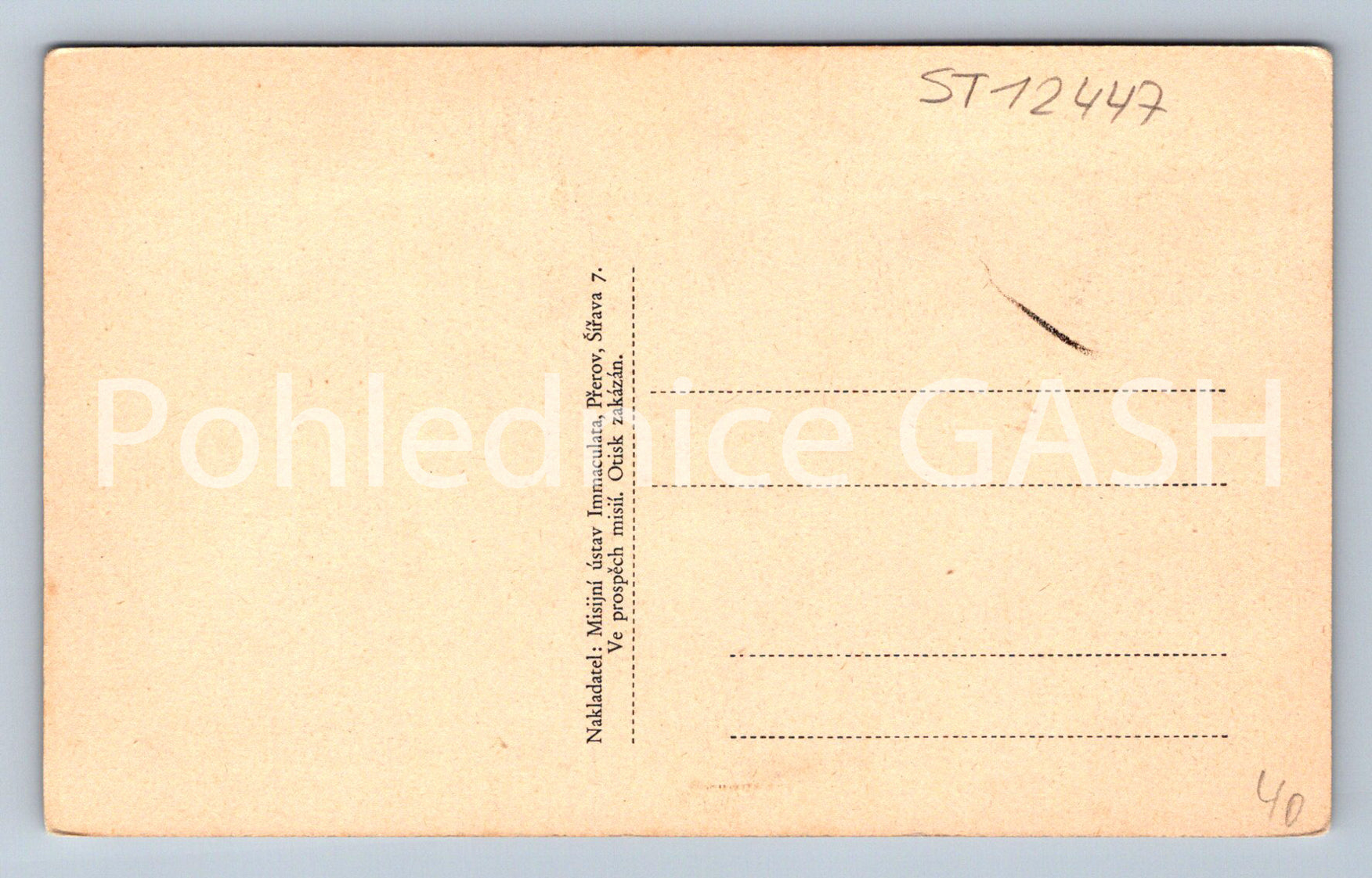 Pohlednice MÁŠ MINISTRANT HAROLD PŘED SOCHOU MATKY BOŽÍ (ST12447)