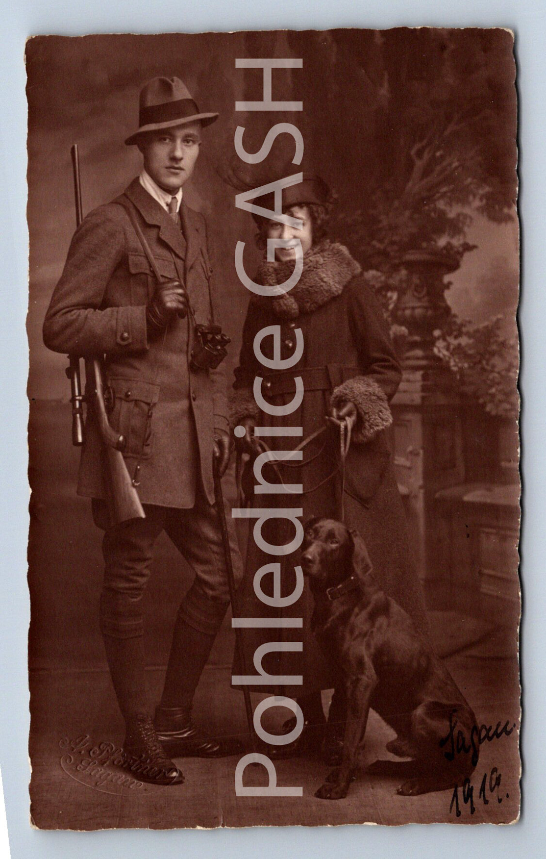 Pohlednice MYSLIVEC SE PSEM A SVOU ŽENOU (ST12466)