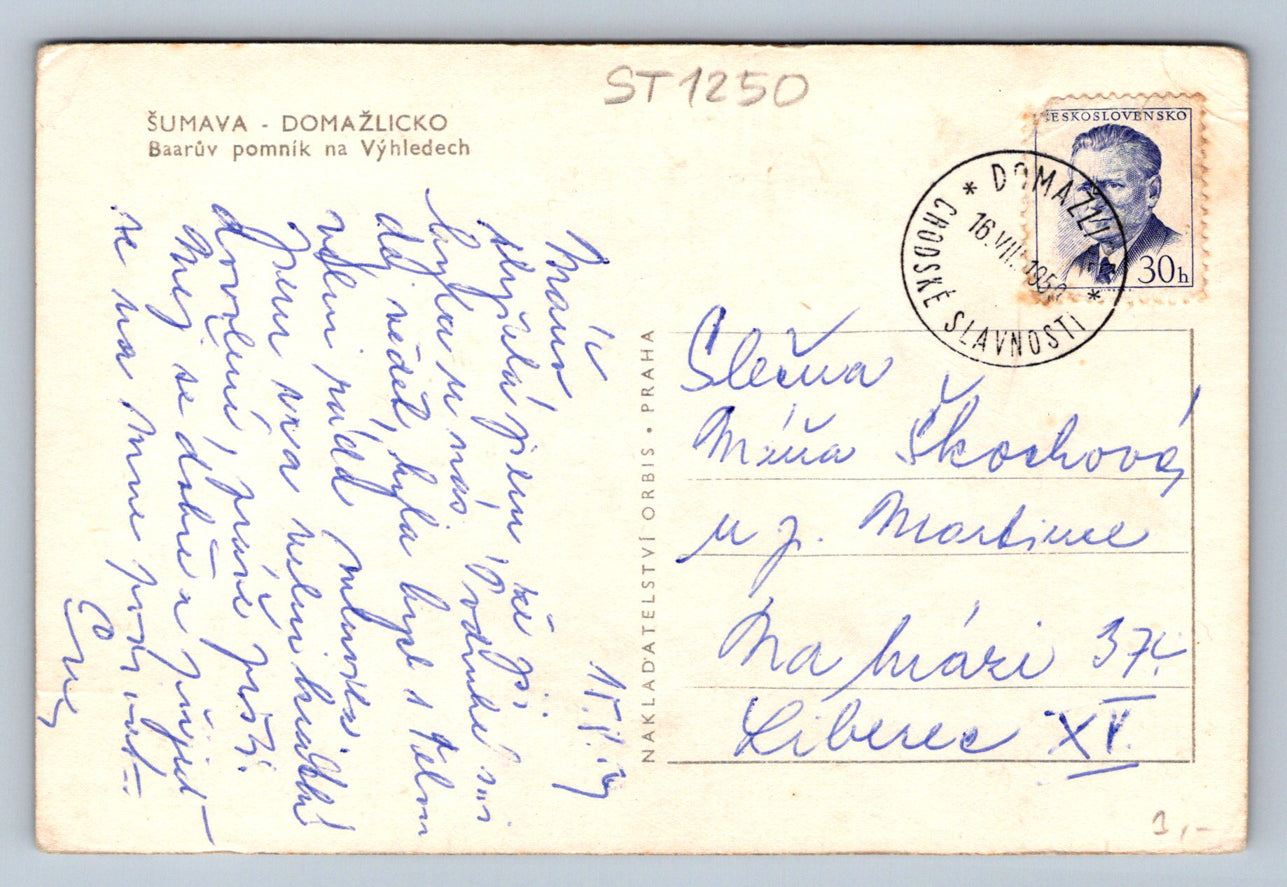 Pohlednice ŠUMAVA - DOMAŽLICKO - BAARŮV POMNÍK NA VÝHLEDECH (ST1250)
